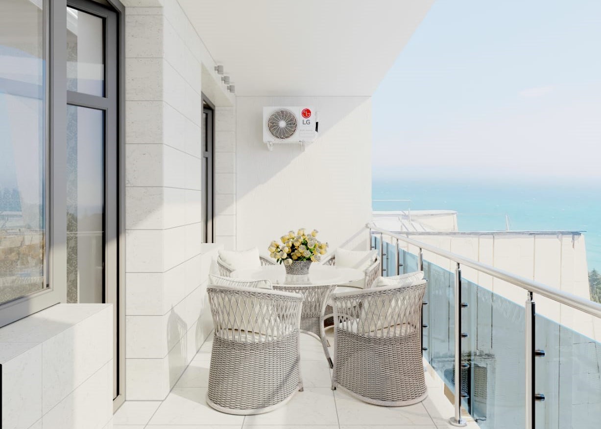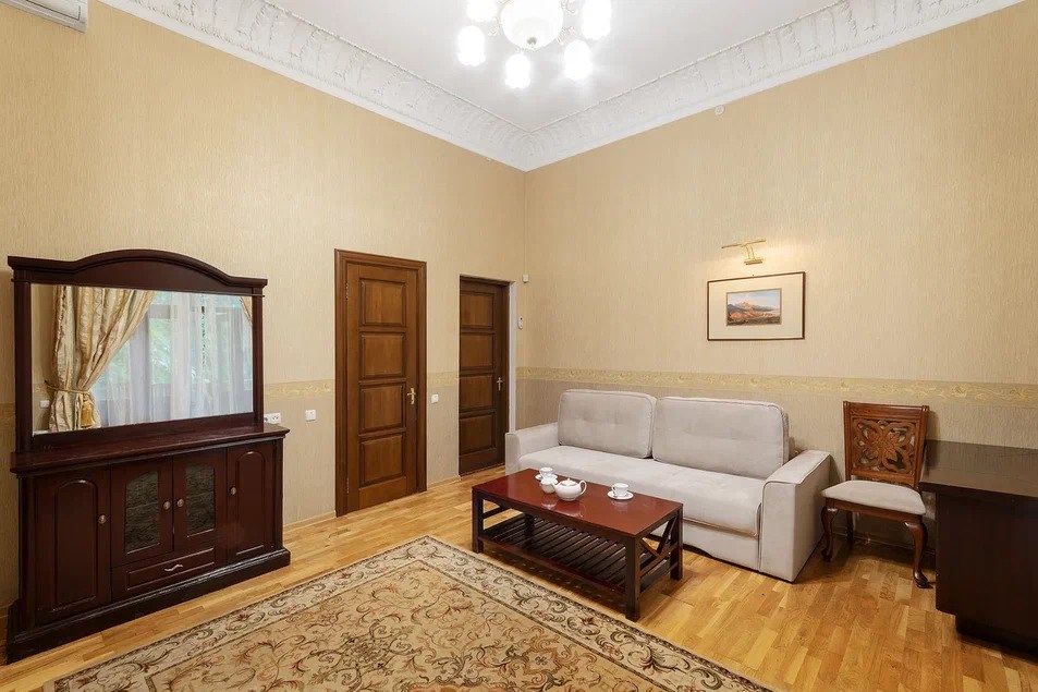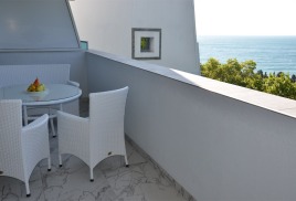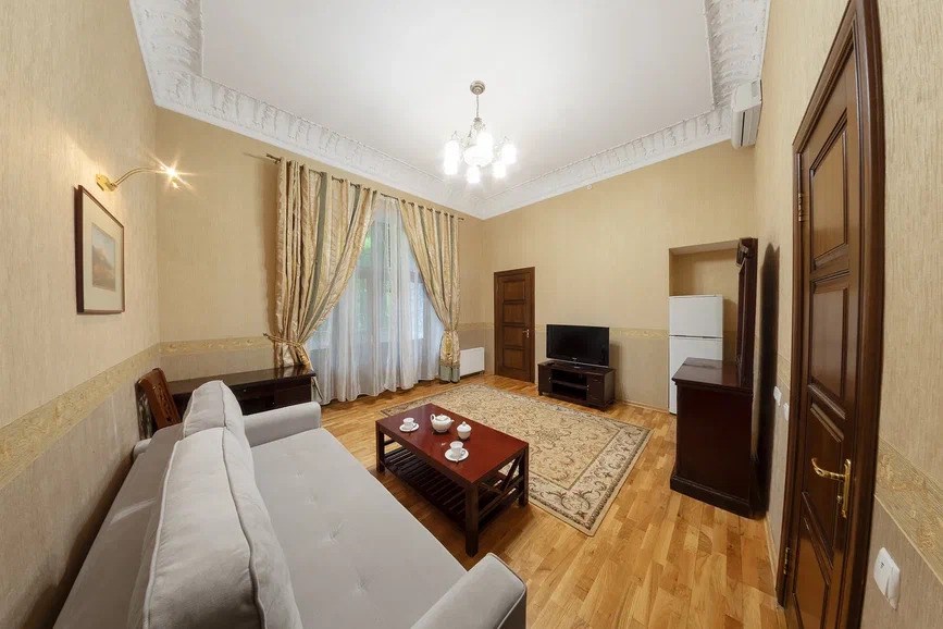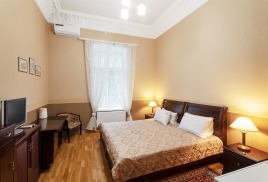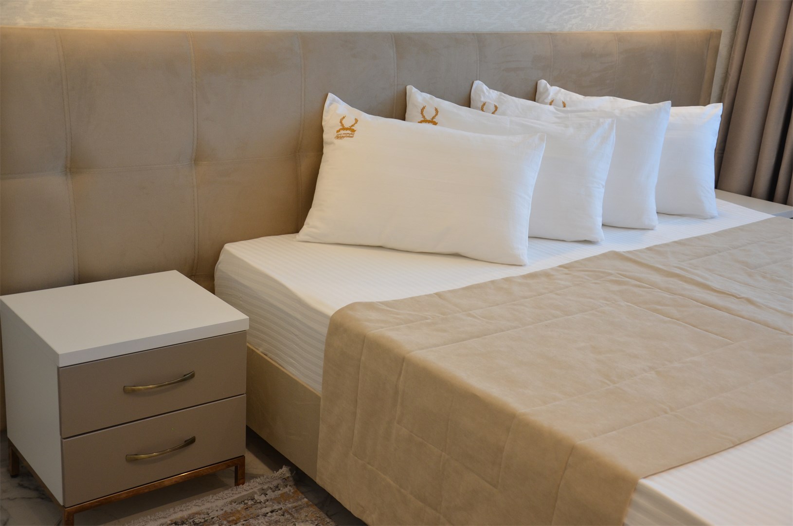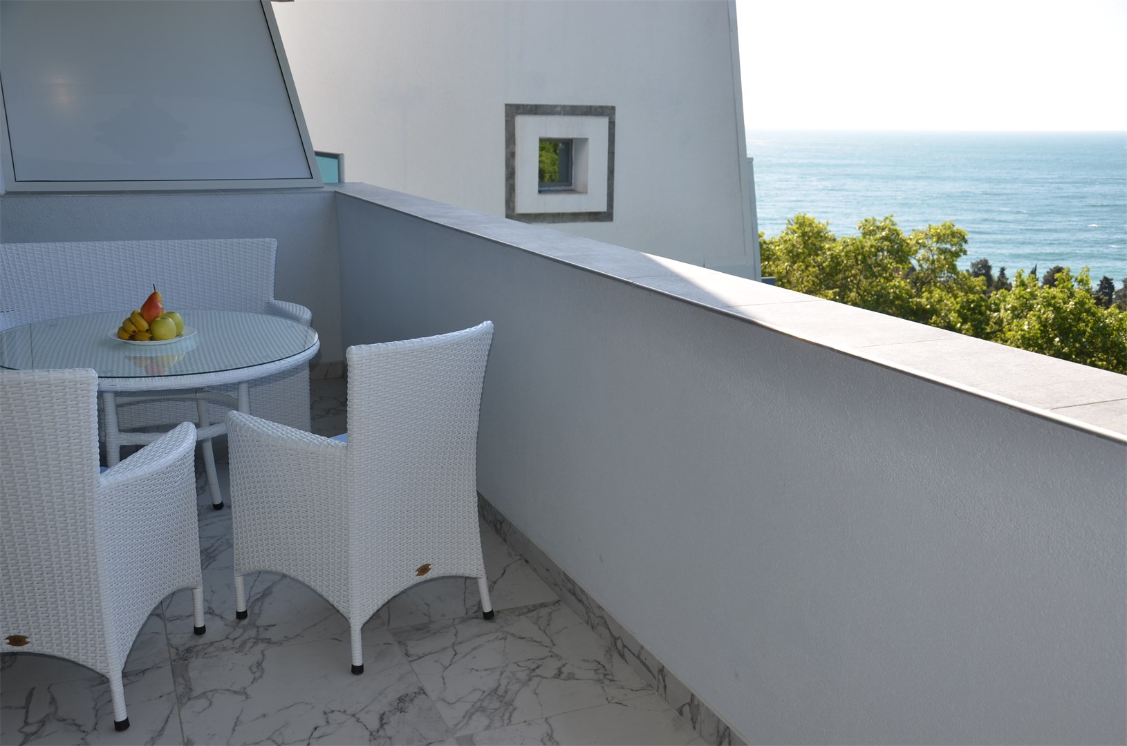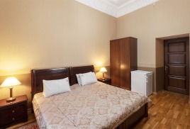 - 2-х местный 2-х комнатный Улучшенный (64 кв.м) - одна двуспальная кровать, 2-х местный диван, совмещенный санузел, бойлер, большая ванна, биде (кроме номера 7) зеркало, стол, шкаф для одежды, вешалки, полка для багажа, TV с пультом управления, холодильник, 2 стула, 2 прикроватные тумбочки, индивидуальные осветительные приборы, набор посуды (чайный набор, набор столовой посуды, набор столовых приборов, штопор), электрический чайник, фен, комплект банных полотенец, комплект постельных принадлежностей, тапочки, халаты, набор мини парфюмерии, кондиционер. Балкон с комплектом мебели. Wi-Fi в каждом номере.