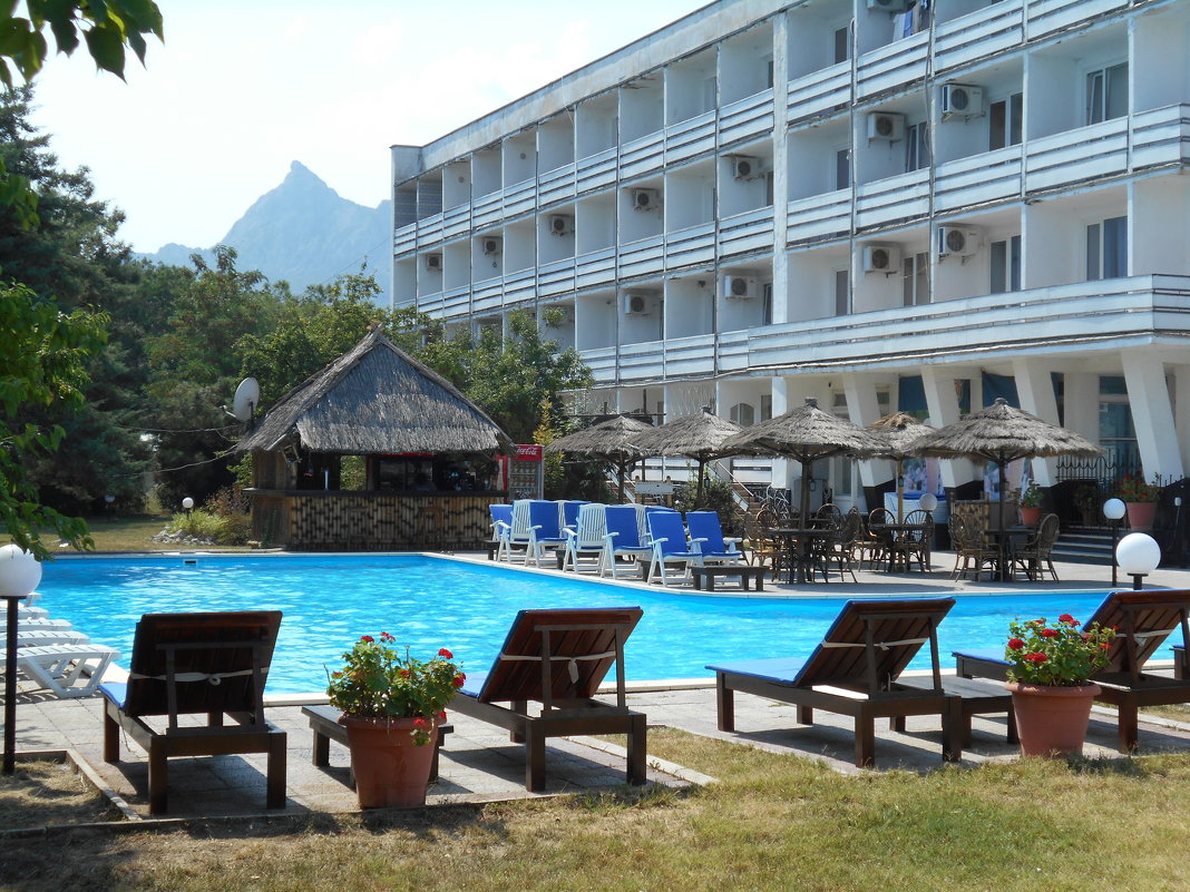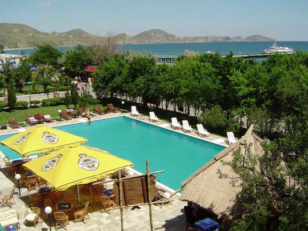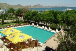 Пансионат «Голубой залив» расположен в поселке Коктебель, 140 км от Симферополя и 20 км от Феодосии, на границе государственного заповедника Кара-Даг.