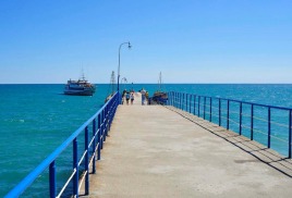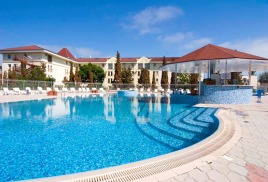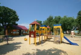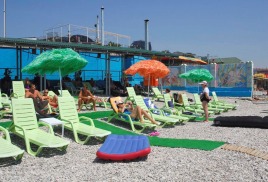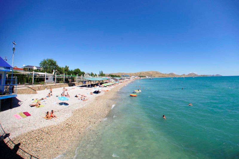 Пляж: собственный галечный 50 метров от туристического комплекса, протяженность 240 метров. На пляже: стационарные теневые навесы, раздевалки, шезлонги (входят в стоимость). Время работы пляжа: c 06:00 до 23:00.