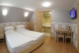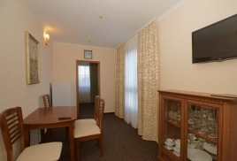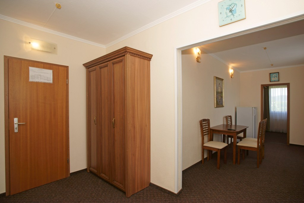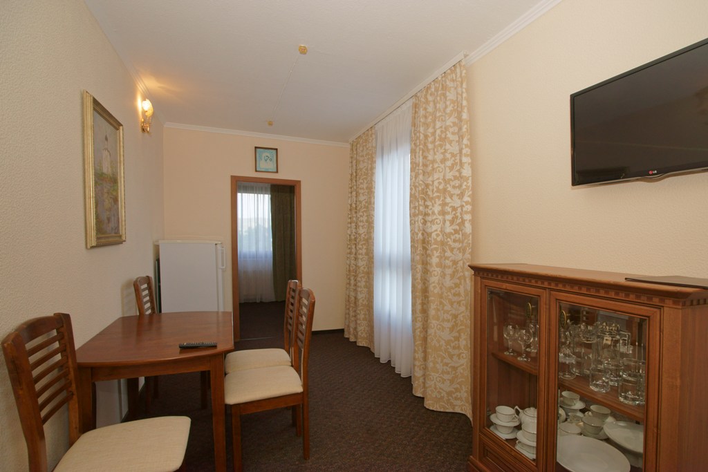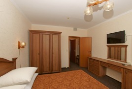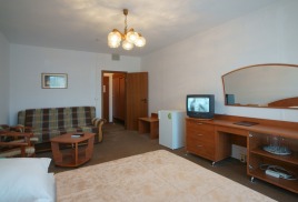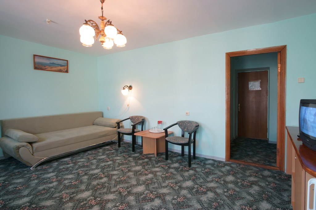 - 2-местный 2-комнатный номер. Площадь: 25 кв.м. В номере: спальня с двуспальной кроватью, гостиная с диваном, телевизор, холодильник, кондиционер, санузел.