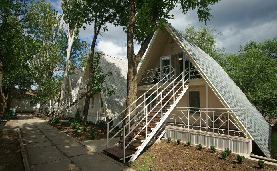 Коттеджи № 1,2,4, 5- 2-х этажные коттеджи , на 1 этаже расположено два 2-комнатных номера, на 2 этаже расположен один 2-комнатный номер.