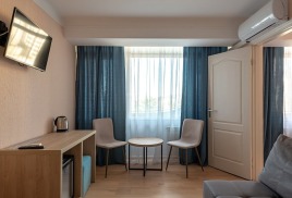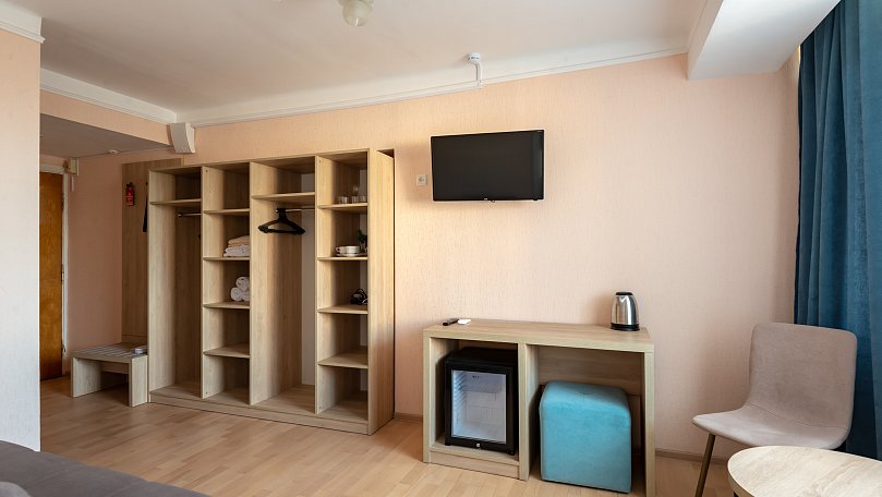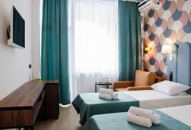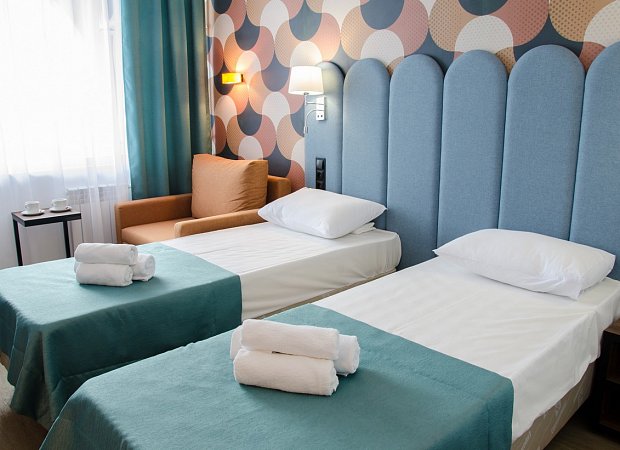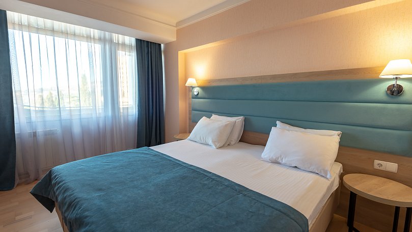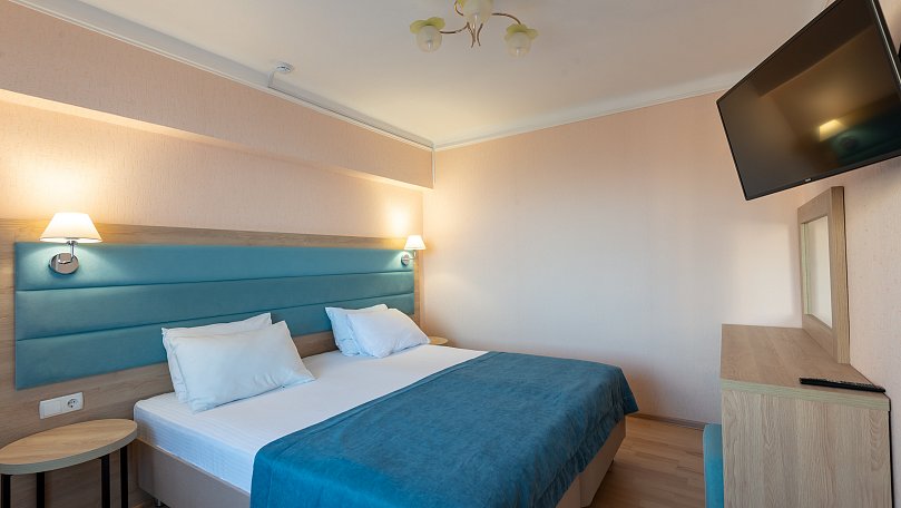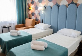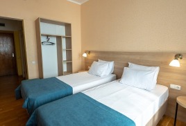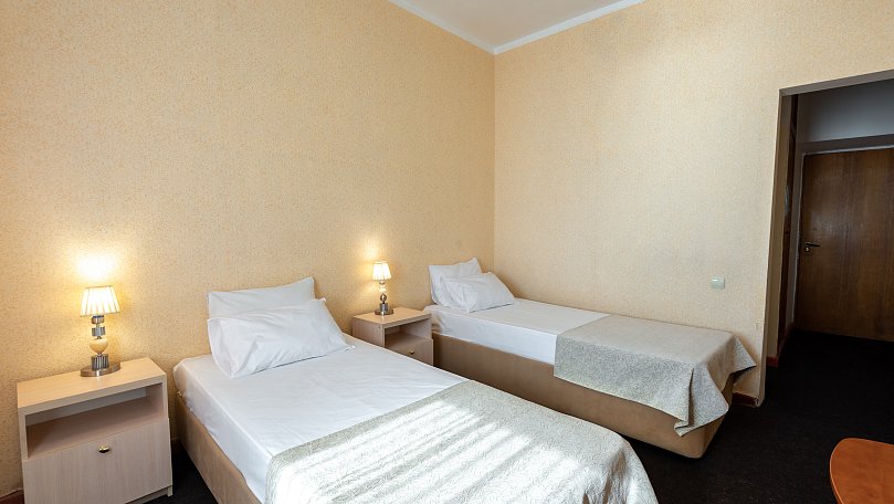 - 2-местный 1-комнатный номер супериор. Корпус № 11. Площадь 18 кв. м. В номерах: две односпальные кровати или одна двуспальная кровать, телевизор, холодильник, кондиционер, электрочайник, санузел с душем, фен, халат, тапочки, балкон.