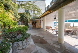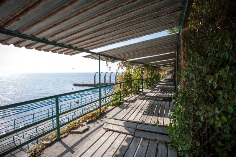 Пляж: галечный в 50 м. от корпуса, протяженностью 350 метров с оригинальной теневой зоной, широкой пляжной полосой и чистым морем, оборудован навесами и лежаками (деревянные лежаки входят в стоимость, пластиковые шезлонги за дополнительную плату). На пляже: бар "Морской", лодки, водные велосипеды, прогулочный катер (выполняющий прогулки по индивидуальным программам), обучение подводному плаванию, подводная охота, подводные съемки, прокат водного инвентаря.