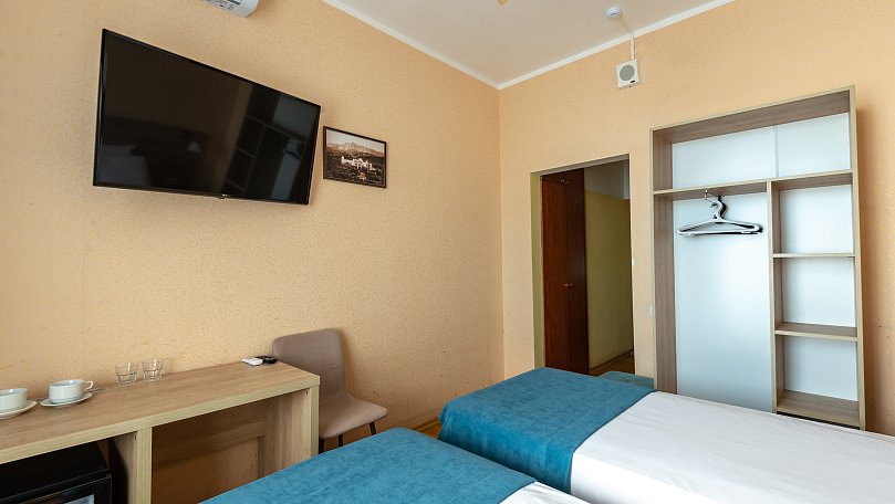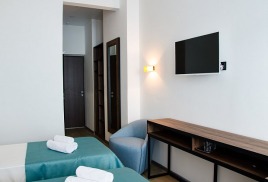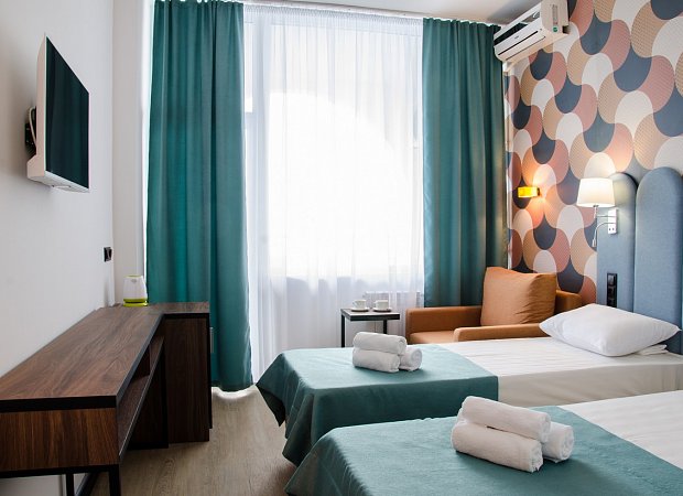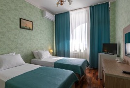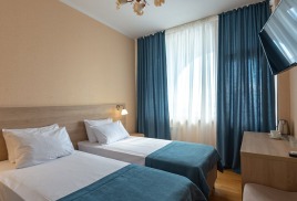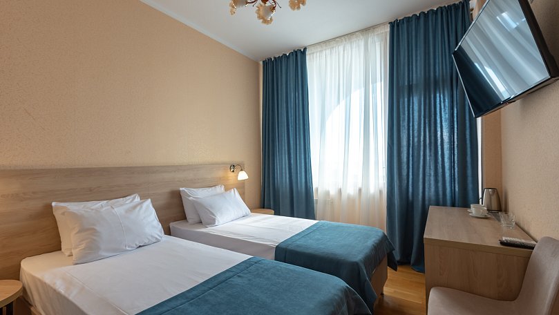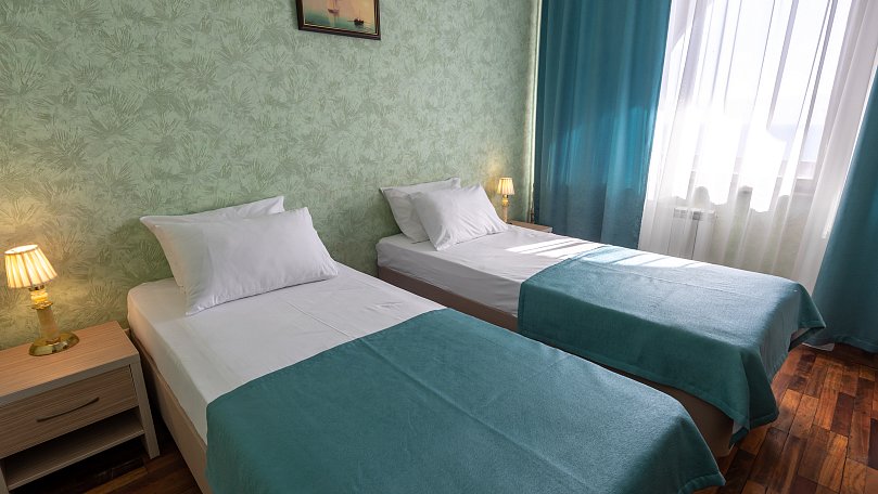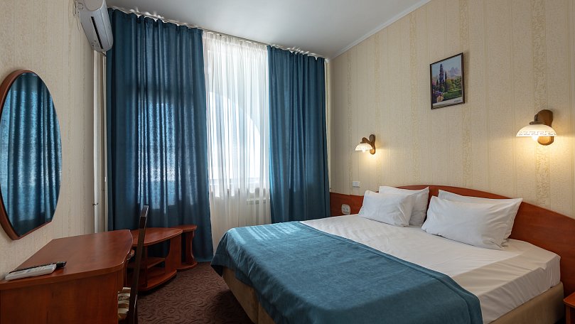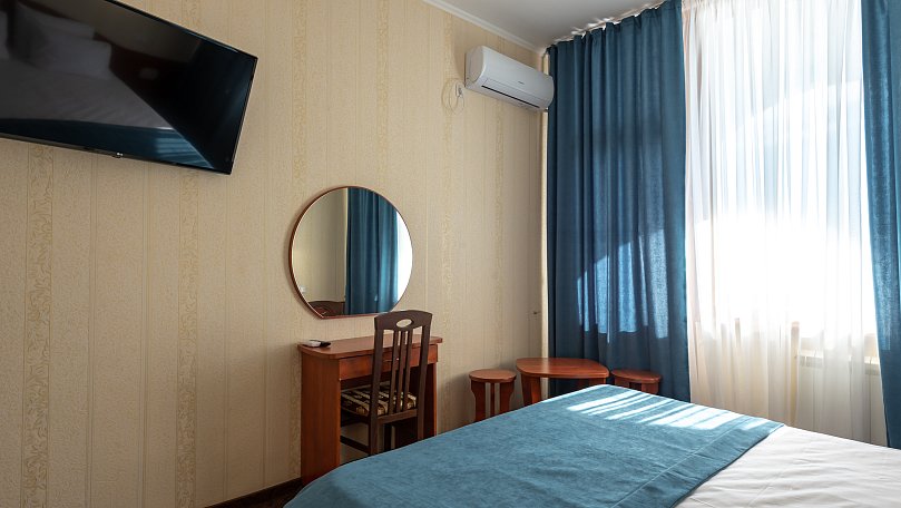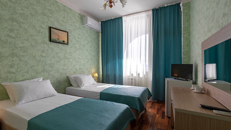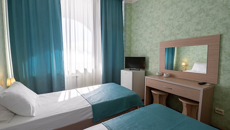 - 2-местный 1-комнатный номер стандарт. Корпус № 11.Площадь номера 18 кв. м. В номере: 2 односпальные кровати , холодильник, телевизор, кондиционер, санузел с душем, балкон. Прямой или боковой вид на море.