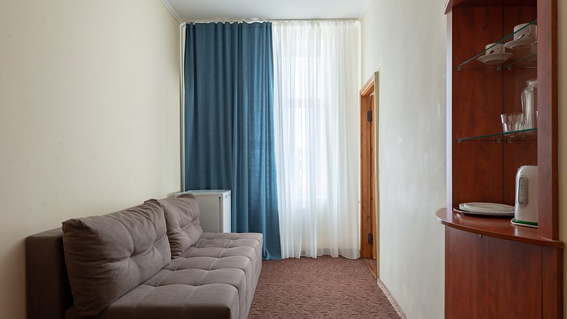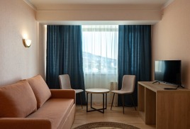 - 2-комнатный 2-местный номер Люкс. Корпус № 10, 11. Площадь номера 30-36 кв. м. В номере: спальня с двухспальной кроватью, гостиная с мягкой мебелью, кондиционер, холодильник, телевизор (кабельное телевидение), чайный набор (электрочайник, набор посуды), санузел с душем, фен, халат, тапочки, балкон. Корпус № 10 - номера с боковым видом на море, парк или на территорию санатория; корпус № 11 - боковой вид на море или на территорию.