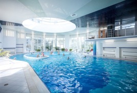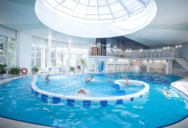 - крытый бассейн с пресной водой и комплексом гидромассажных установок: противоток, воздушный гейзер, водопад "Кобра", "ленивая река", площадь зеркала 196 кв.м., работает круглогодично, пользование входит в стоимость