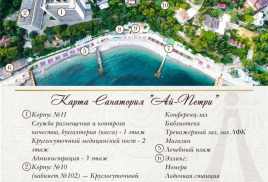 В арсенале санатория современный, оснащенный необходимым медицинским оборудованием лечебный корпус, который постоянно открыт к услугам гостей. Кроме этого, клуб-столовая всегда рада побаловать гостей санатория, предложит и детям и взрослым разнообразное меню по типу "Шведский стол". Пляж Санатория «Ай-Петри» - широкий, чистый и ухоженный с мелкой галькой.