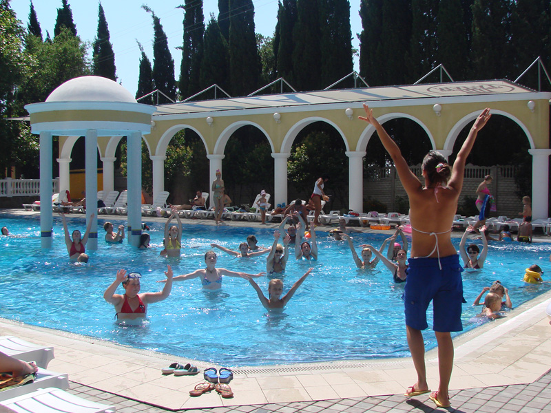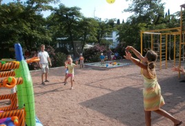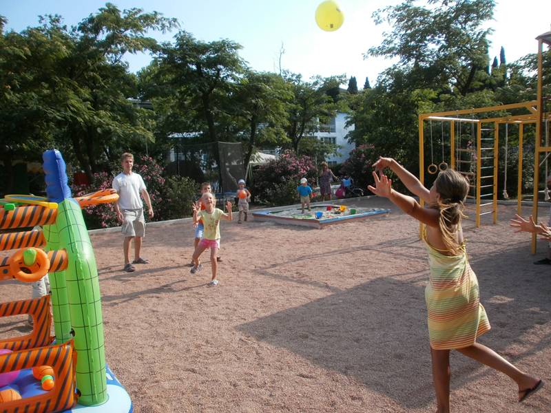 - Детская игровая комната расположена на 1 этаже 2-го корпуса. Время работы: с 08:00 до 20:00. В клубе с детьми работает профессиональный педагог (спортивные игры, квесты, рисование, аква-грим, игры на свежем воздухе на оборудованной детской площадке, мини-диско, просмотр кино и мультфильмов).