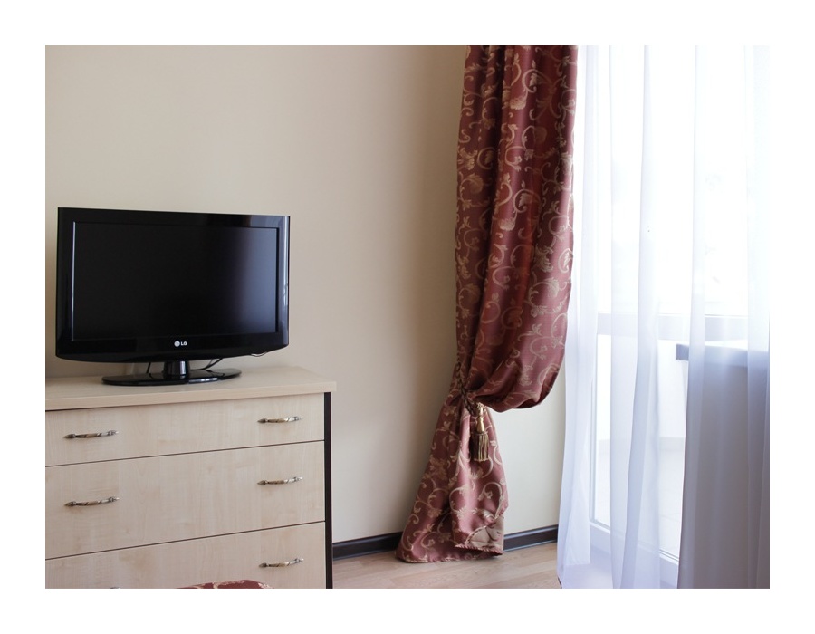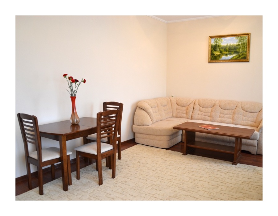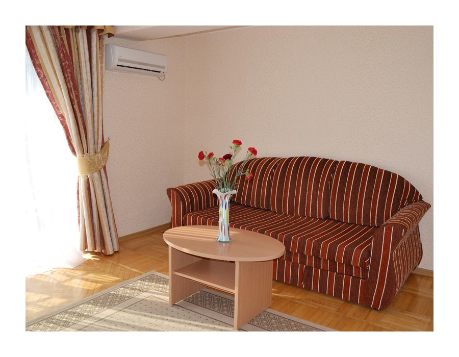 - 2-местный 2-комнатный Полулюкс 2-5 этаж. Площадь 30 кв.м. В номере: спальная с двуспальной кроватью, гостиная с мягкой мебелью, санузел с душем, телевизор, холодильник, кондиционер, балкон.