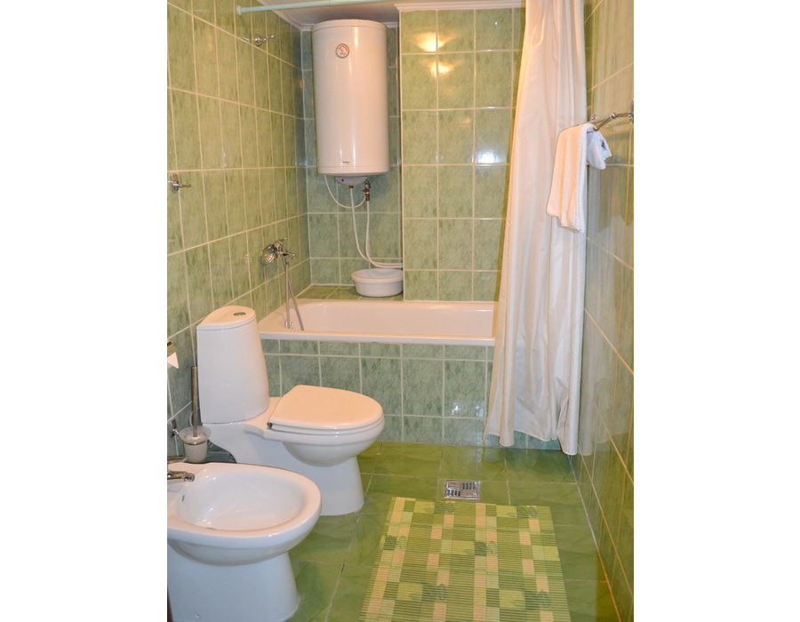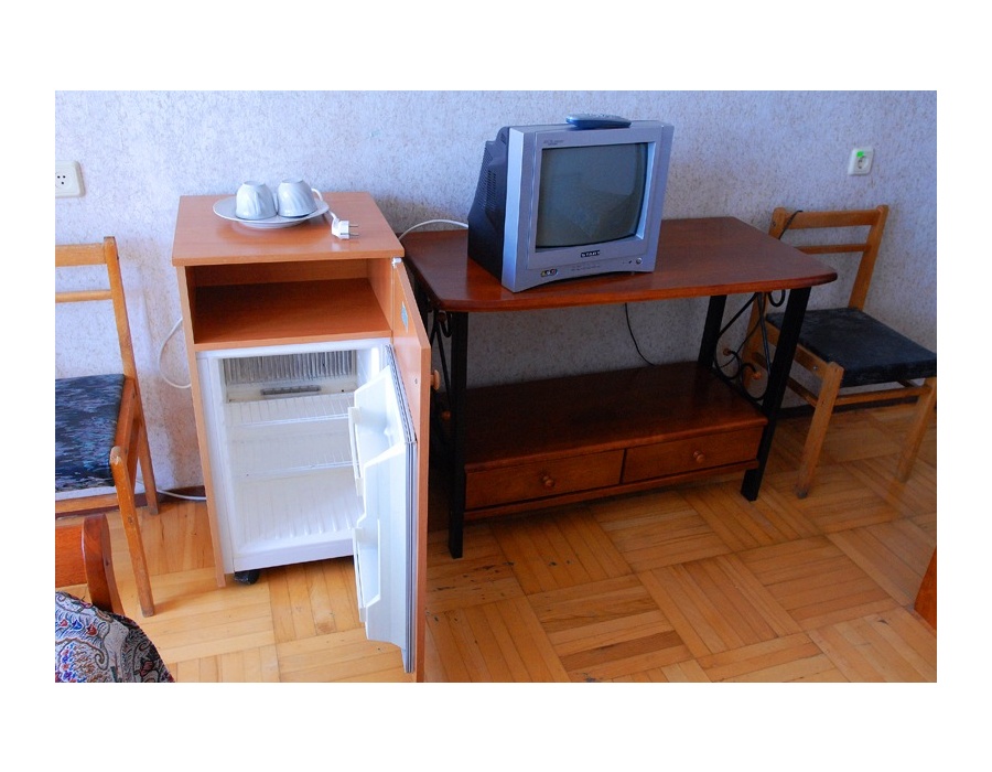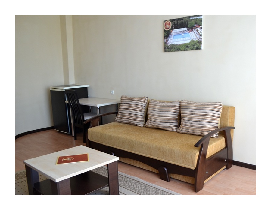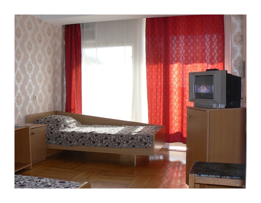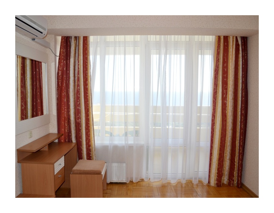 - 1-местный 1-комнатный номер Плюс. Площадь - 13 кв. м. В номере: полутороспальная кровать, санузел с душем, телевизор, холодильник, кондиционер, балкон. Вид из номера на море или горы.