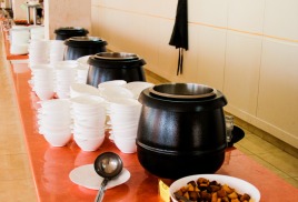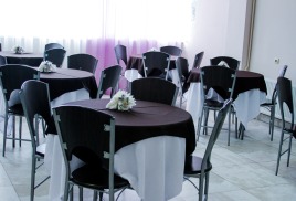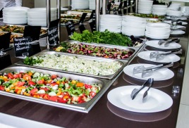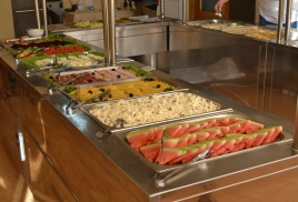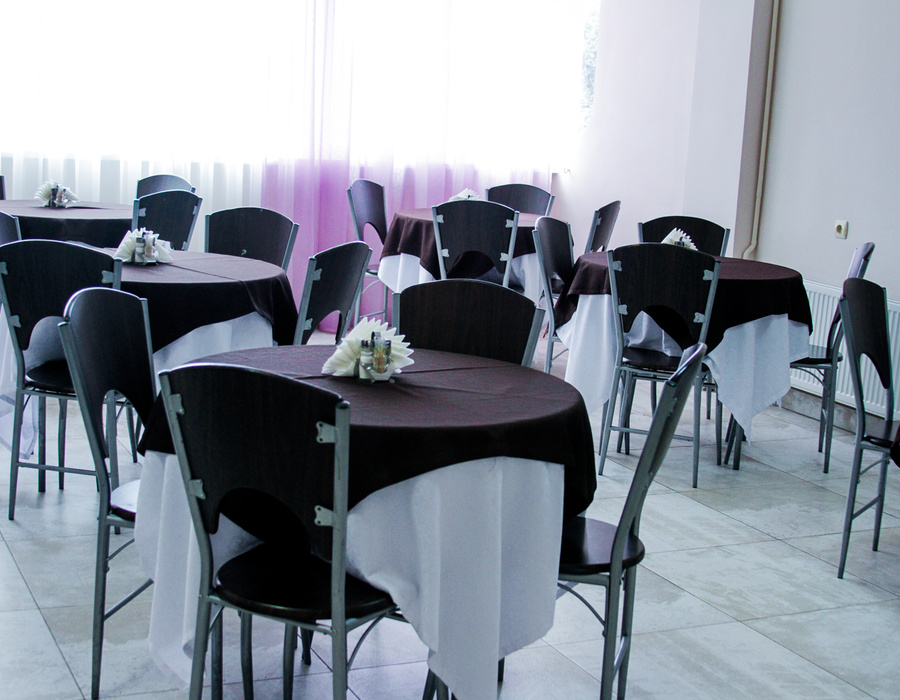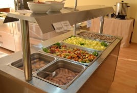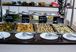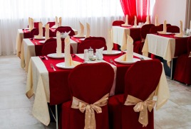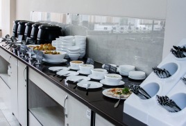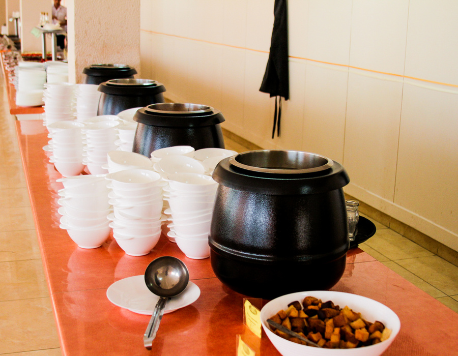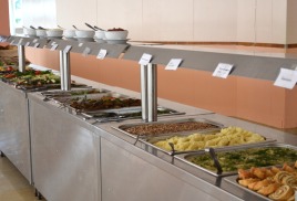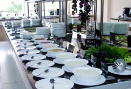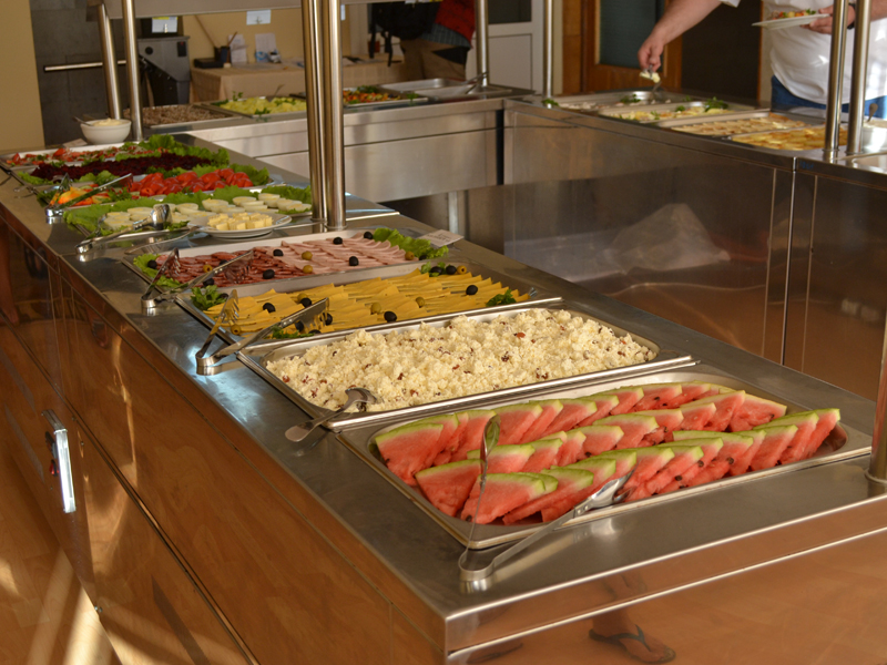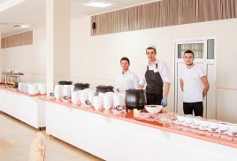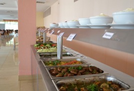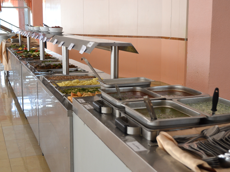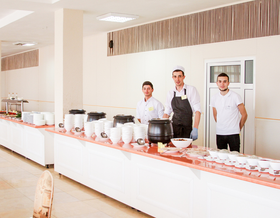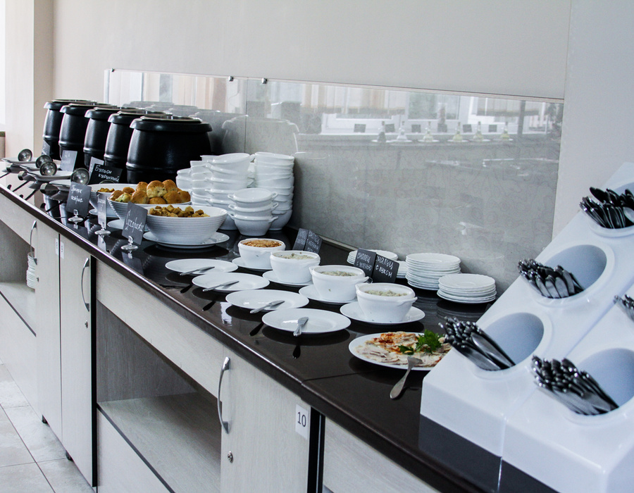 Столовая расположена в отдельно стоящем здании. Общая вместимость зала - до 700 человек. Зал имеет выход на открытую террасу, кондиционирован, для удобства гостей разделен на раздаточную зону «шведской линии» и просторного зала со столиками на 4-х человек.