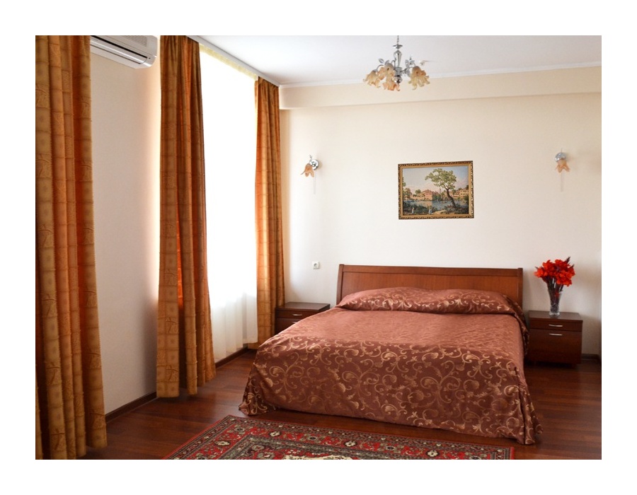 - 2-местный 2-комнатный Люкс 2-5 этаж. Площадь - 43 кв.м. В номере: спальная с двуспальной кроватью, гостиная с мягкой мебелью, санузел с душем, телевизор, холодильник, кондиционер, балкон.