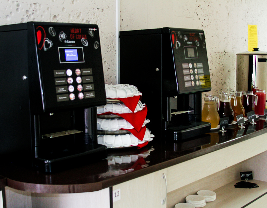 Столовую посещают гости номеров категории двухместный стандарт, корпус № 2, двухместный «Комфорт» и одноместный «Плюс», корпус № 1.