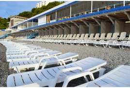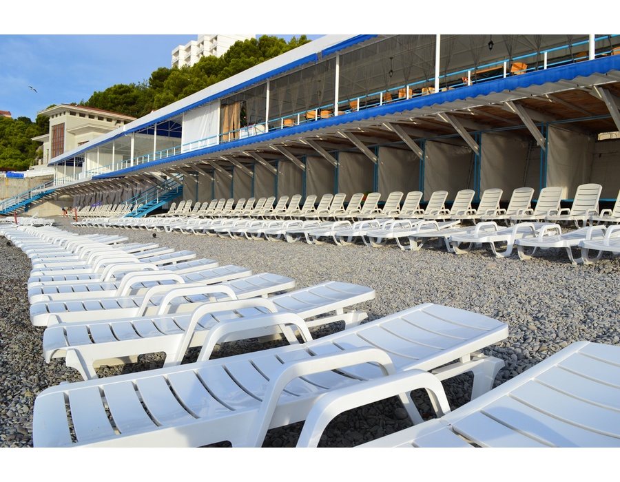 - первая карта пляжа (VIP-сектор) – оборудована теневыми навесами, шезлонгами, зонтиками, кабинками для переодевания, душем. Дополнительно представлены двухместные бунгало, укомплектованные мягкими матрацами, подушками и шторами. Правом посещения VIP-сектора пользуются отдыхающие номеров Виллы «Парк Чаир», а также номеров полулюкс и люкс корпусов № 1 и № 2;