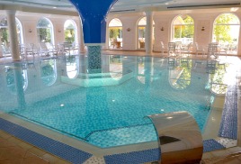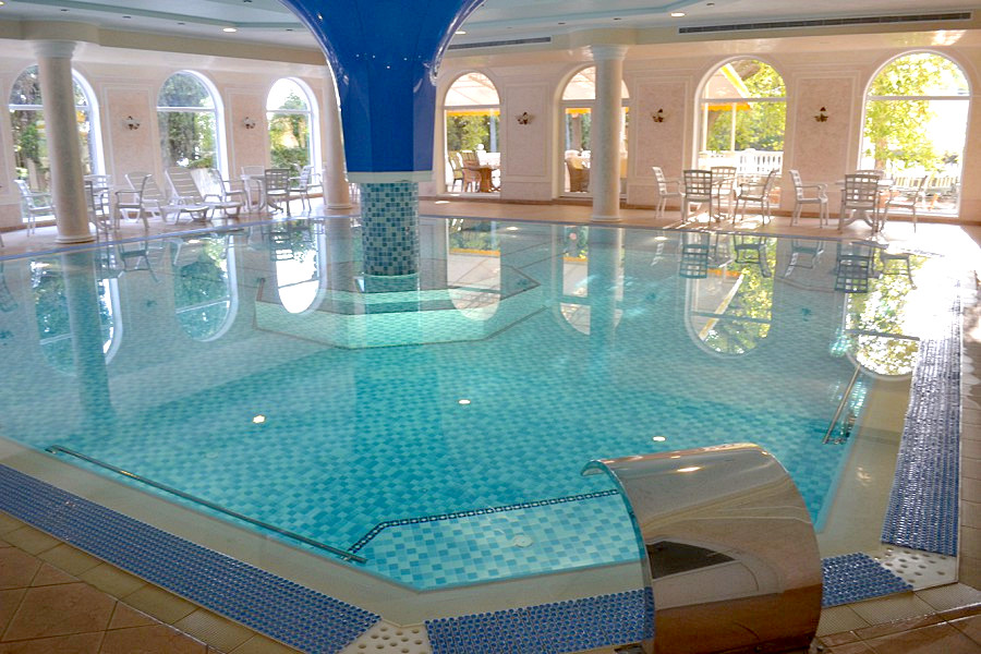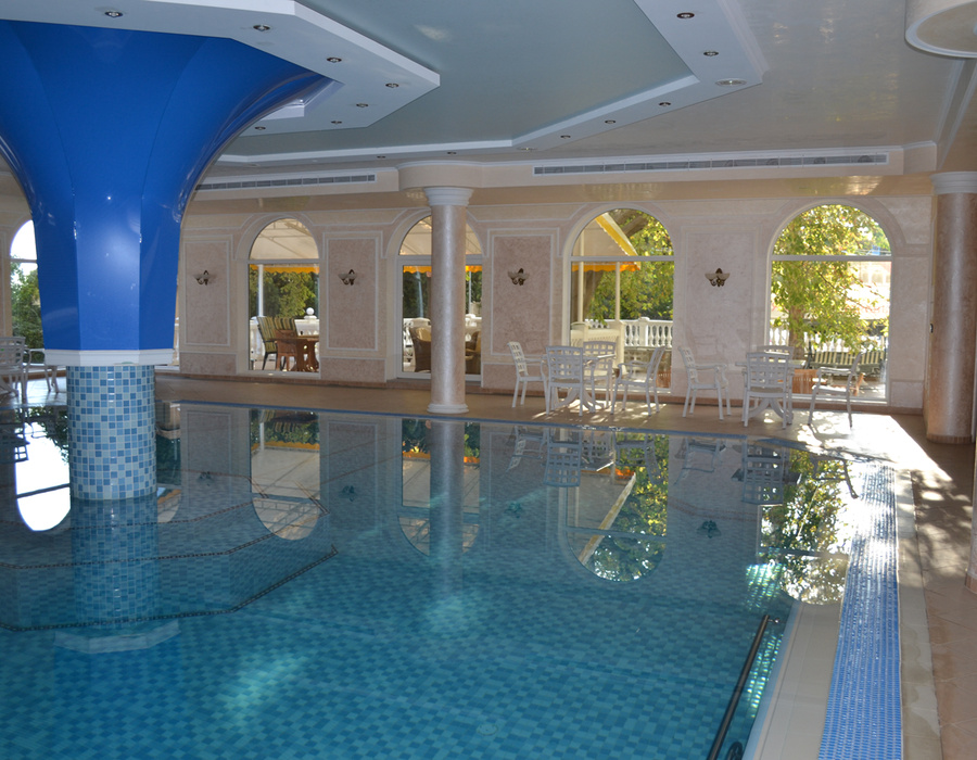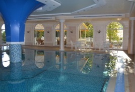 - Крытый бассейн с гидромассажем и противотоками, с подогревом работает круглый год. Рядом с чашей бассейна расположены финская сауна, русская баня и фито-бар.