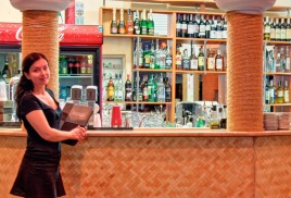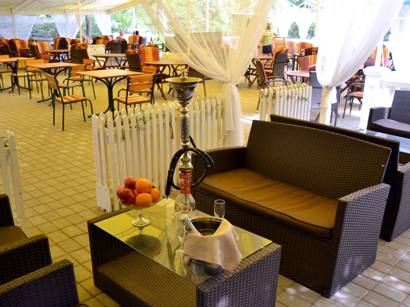 К услугам: десерты, богатейший выбор крымских, чилийский и испанских вин, коньяков, коктейлей, других алкогольных и безалкогольных напитков. С 10:00 до 20:00 в баре у бассейна можно воспользоваться услугой «промежуточное питание» и перекусить закусками, снеками и мороженое.