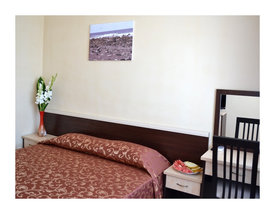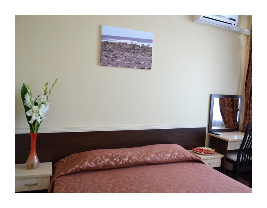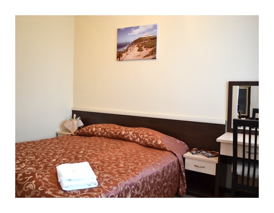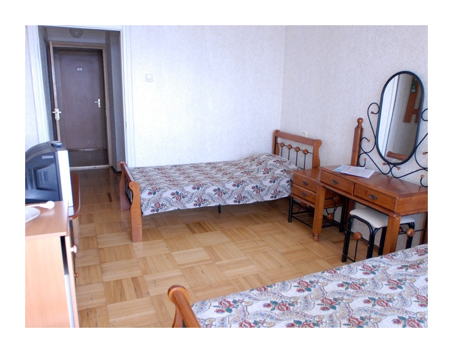 - 2-местный 1-комнатный Стандарт 8-10 этаж. Площадь 20 кв.м. В номере: две односпальные кровати или одна двуспальная, санузел с душем, телевизор, холодильник, кондиционер, балкон. Вид на море.
