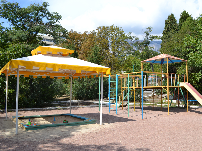 - Детская и спортивная площадка (150 кв. м) оборудована качелями, лестницей, горкой, песочницей, игровыми домиками и палатками, батутами и др., предусмотрен игровой и спортивный инвентарь;