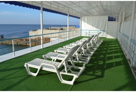 Пляж: собственный мелкогалечный пляж в 300м, доставка на пляж осуществляется по канатной дороге. Общая протяженность дороги насчитывает 250 м, перепад высот – 60 м. Время пребывания в пути составляет 5 минут в одну сторону при скорости движения 0,8–1,1 м/сек. Также к пляжу ведет тенистая аллея, пеший спуск по которой занимает 10 – 15 минут.