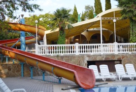 - Открытый плавательный бассейн без подогрева (с гидромассажем, водной горкой, тентами и шезлонгами)