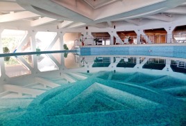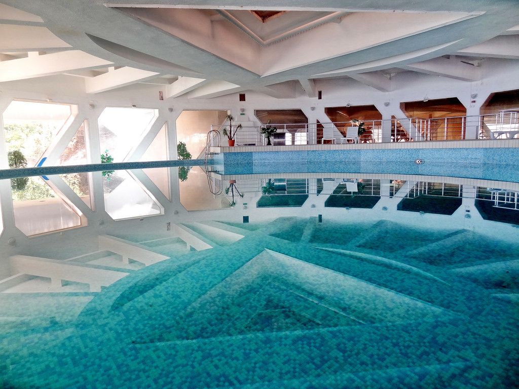Изюминкой санатория «Курпаты» является бассейн с морской водой, который оснащен панорамными окнами - из них открывается потрясающий пейзаж на море. Вода в бассейне подогревается, поэтому принимать морские ванны можно в любое время года.