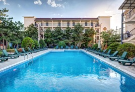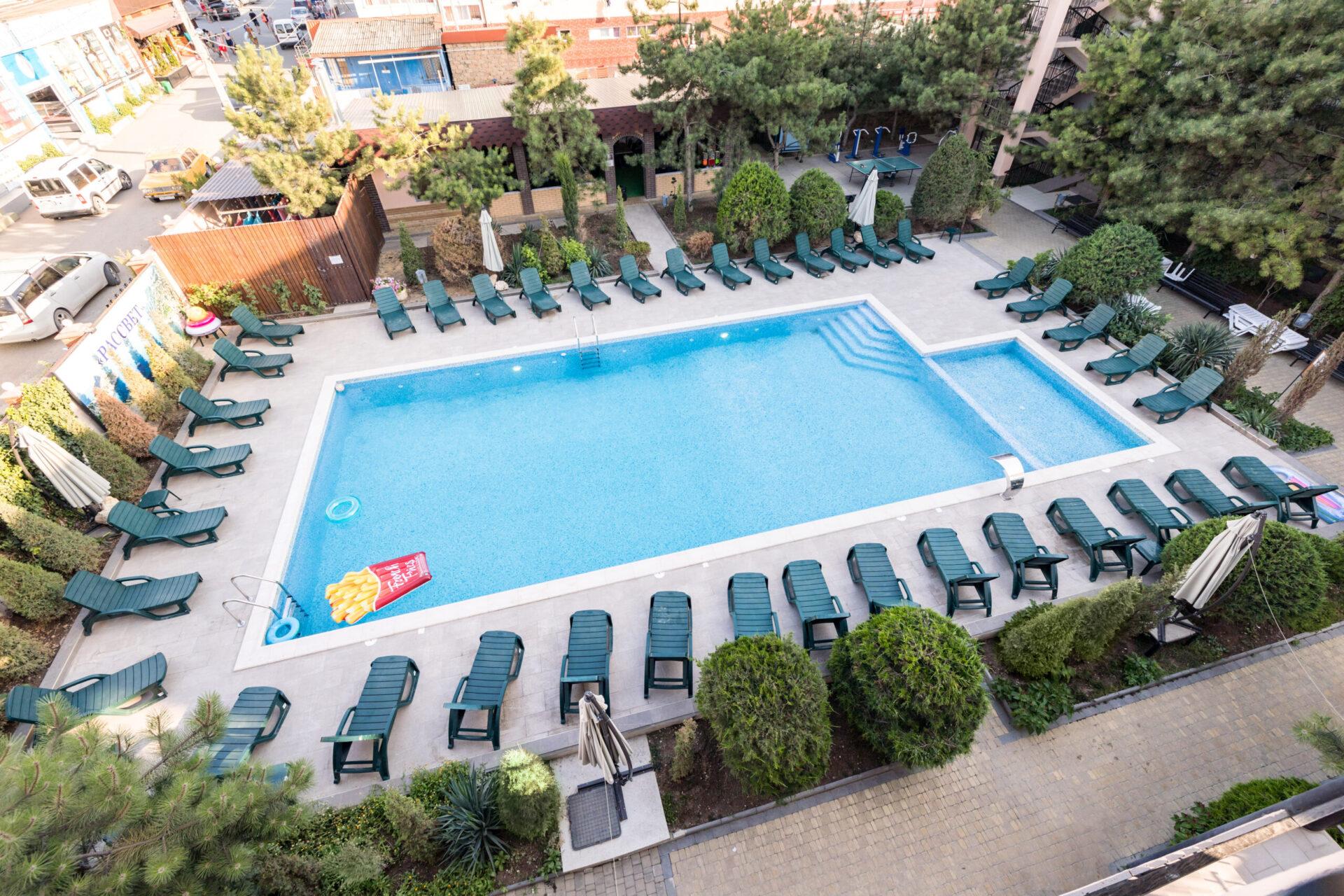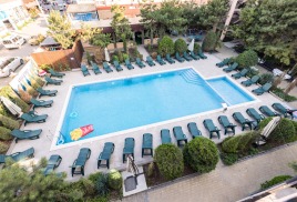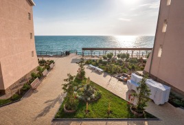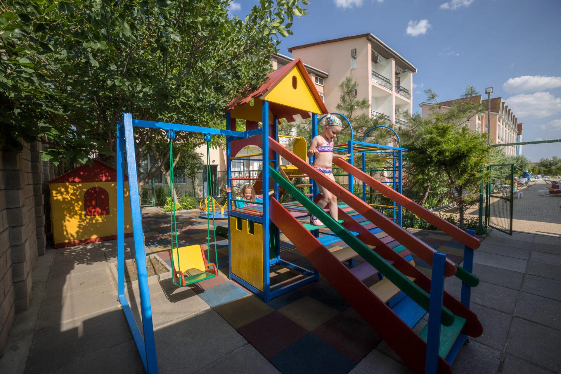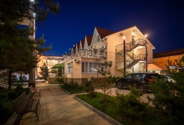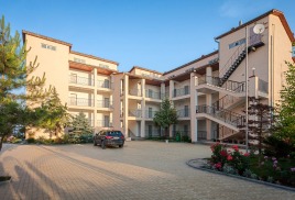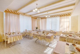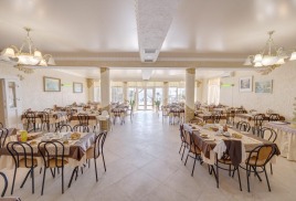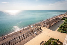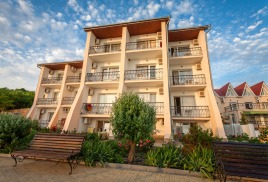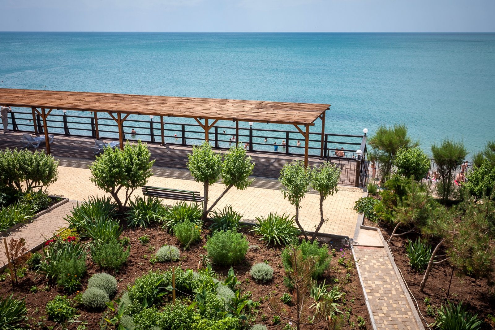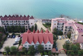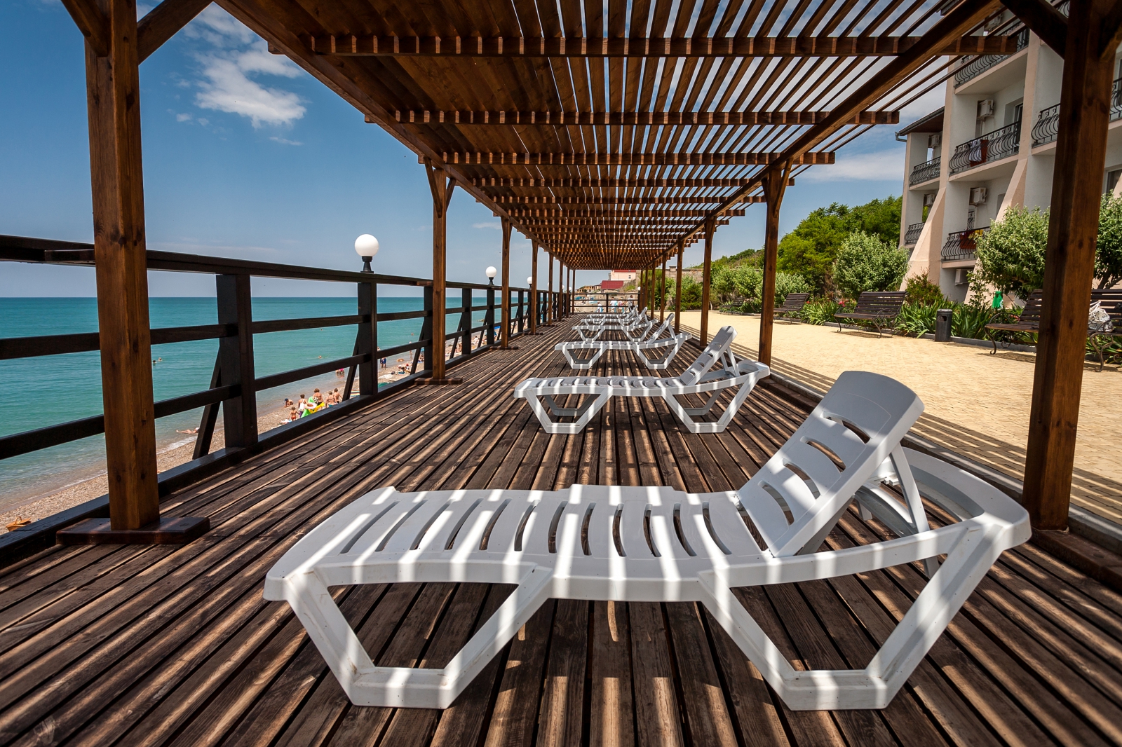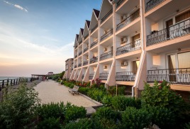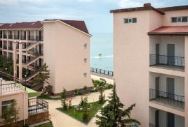Пляж: песчано-галечный, поселковый в 30 метрах от корпусов, прокат шезлонгов за дополнительную плату. Есть бар, кабинки для переодевания, навесы, водные развлечения.