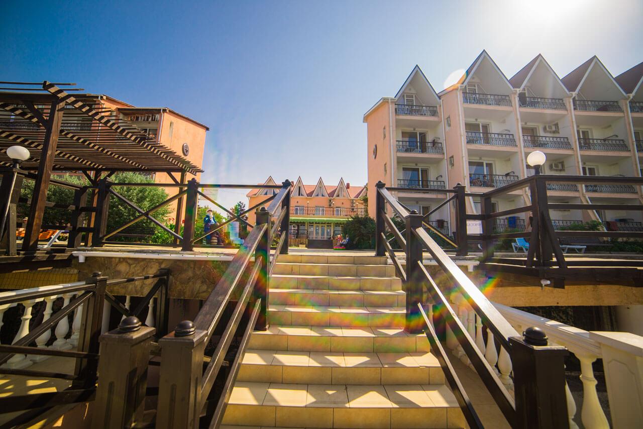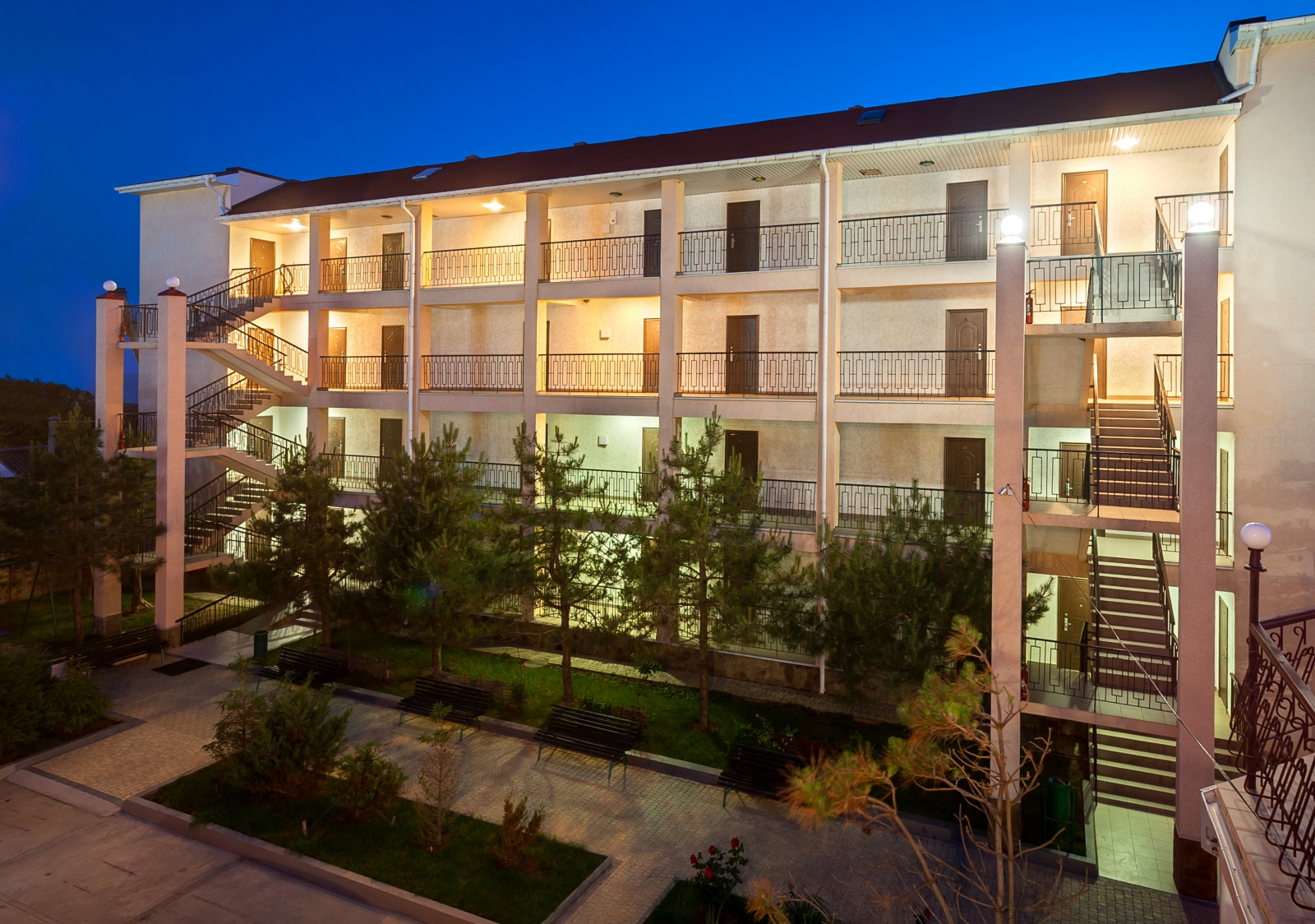 Пансионат “Рассвет” расположен на берегу моря с прекрасным мелко-галечным пляжем в центре курортной зоны пгт. Николаевка. На территории пансионата произрастают хвойные и лиственные деревья, кустарники, разнообразные сорта роз и других растений, что не только украшает ландшафт с эстетической точки зрения, но и дополнительно насыщает воздух неповторимыми ароматами.
