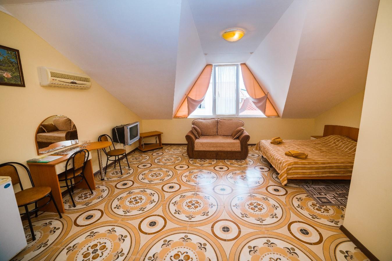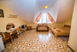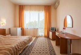 - 1-местный 1-комнатный номер 2 категории без вида на море. Площадь 16 кв.м. В номере: диван-книжка ,телевизор, холодильник, кондиционер, санузел с душевой кабиной.