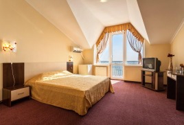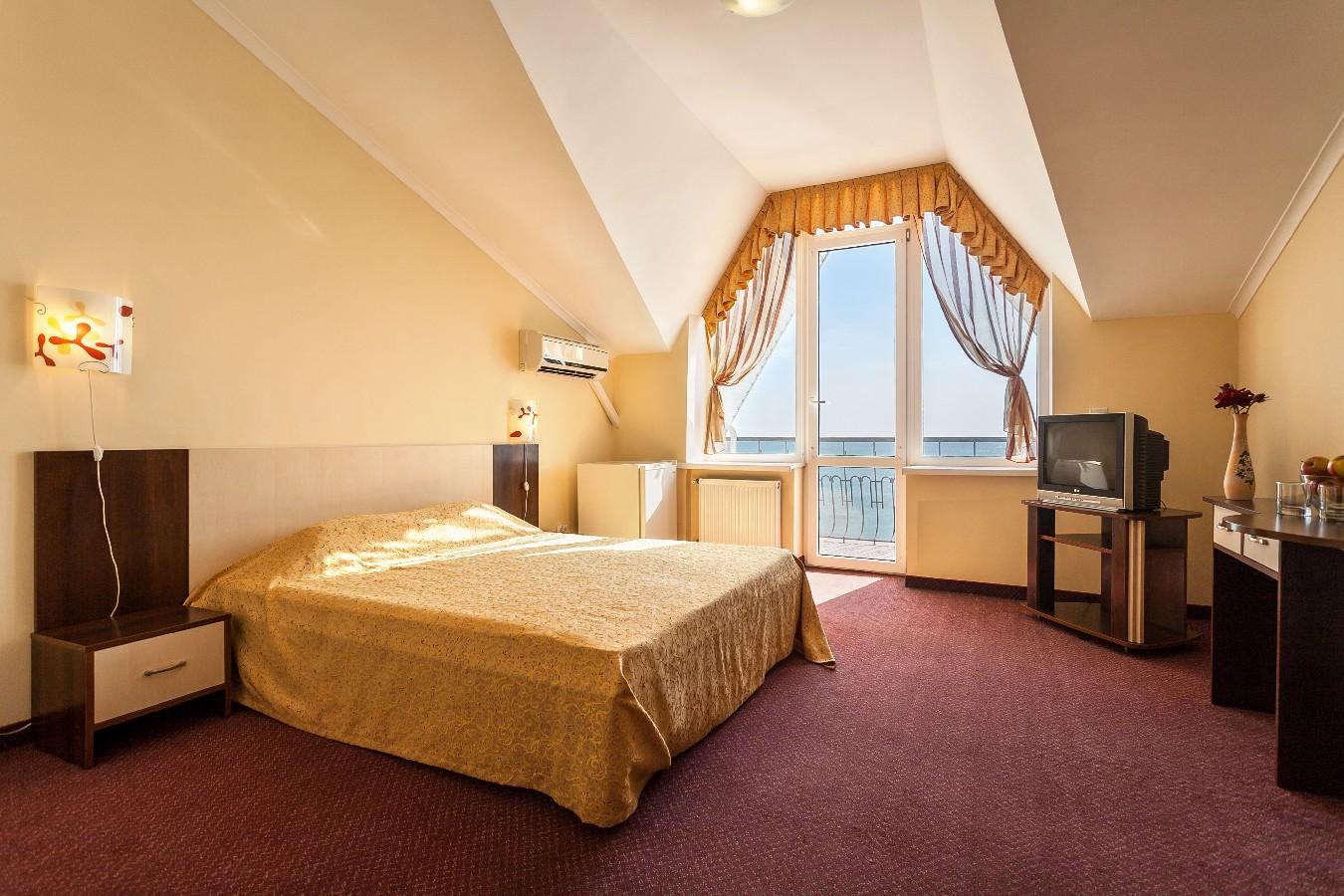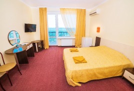 - 2х местный 1но комнатный номер 1 категории с видом на море. Площадь 22 кв.м. В номере: двуспальная кровать, телевизор, холодильник, кондиционер, сейф, балкон с пластиковой мебелью и сушкой для белья, санузел с душевой кабиной. Дополнительное место - еврораскладушка.