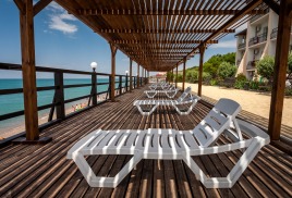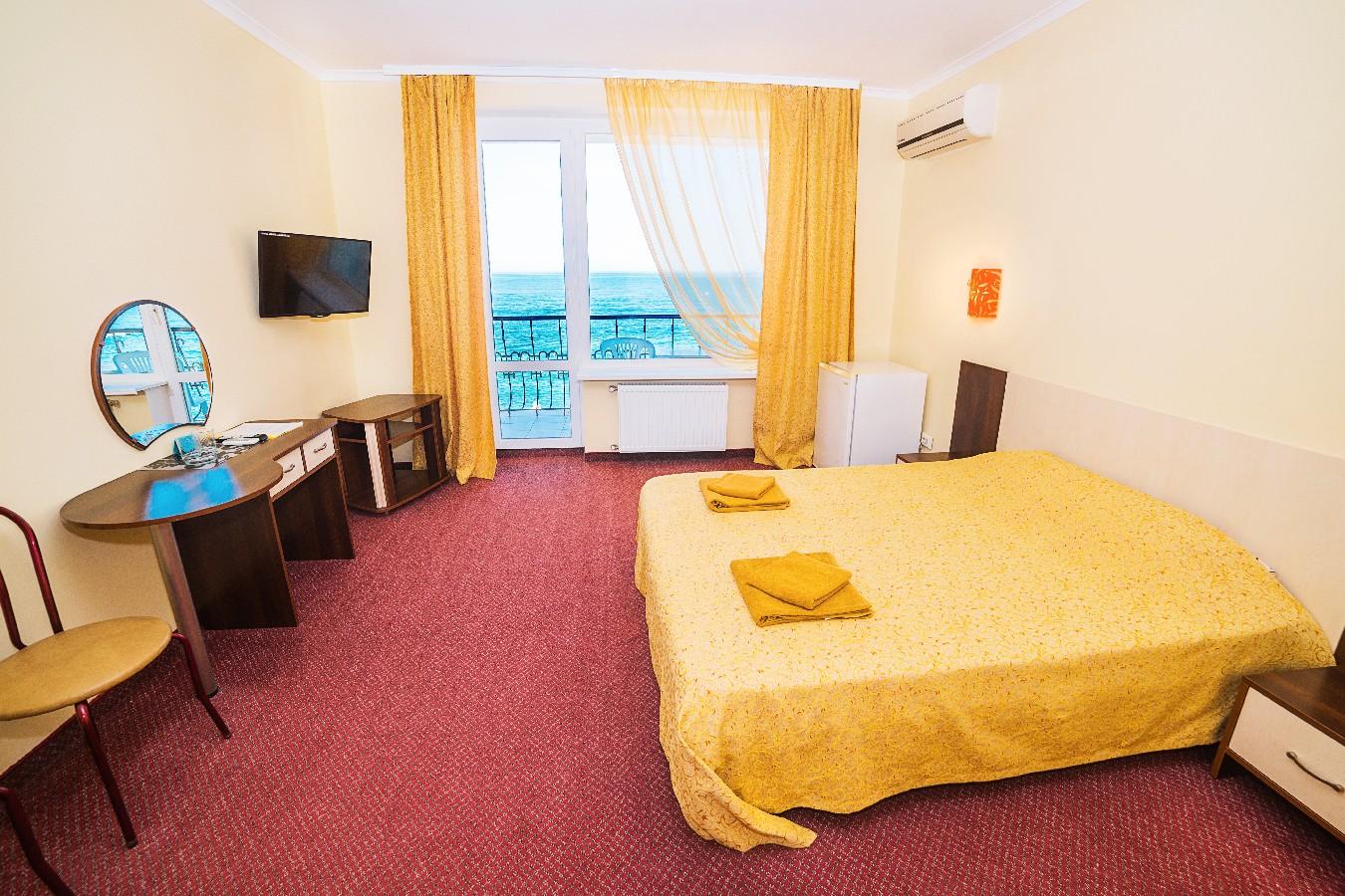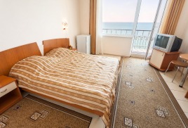 - 2-местный 1-комнатный номер 1 категории с видом на море. Площадь 22 кв.м. В номере: двуспальная кровать, телевизор, холодильник, кондиционер, сейф, балкон с пластиковой мебелью и сушкой для белья, санузел с душевой кабиной. Дополнительное место - еврораскладушка.