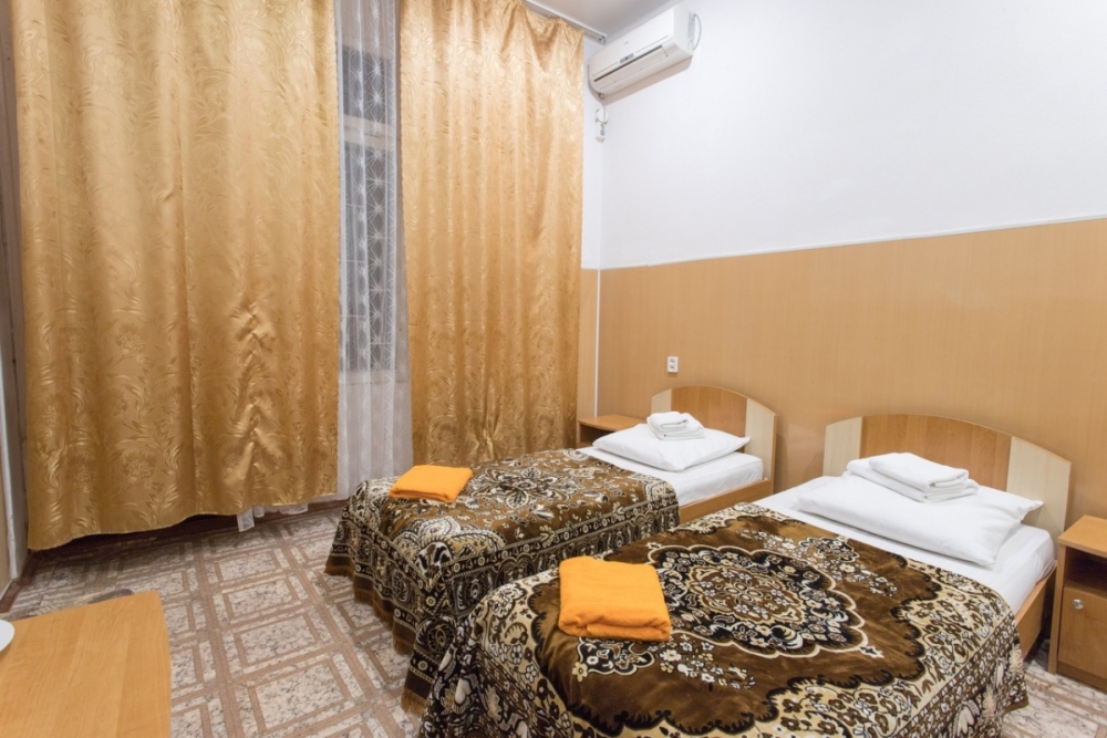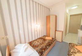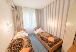 - 2-местный эконом. (8 номеров) Площадь 13 кв.м. В номере: две односпальные кровати, телевизор, холодильник, кондиционер, санузел с душем. Дополнительное место - раскладушка. Номера имеют отдельных вход.