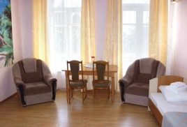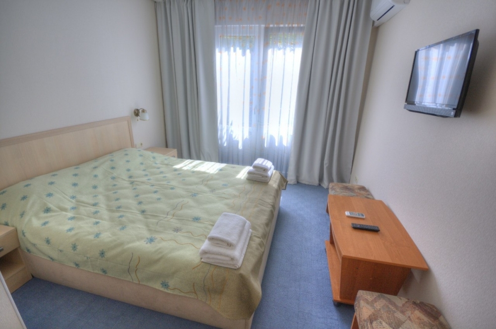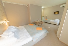 - 2-местный студия. (4 номера) Площадь 26 кв.м. В номере: двуспальная кровать, диван, телевизор, холодильник, кондиционер, санузел с душем. Дополнительное место - диван, раскладушка.