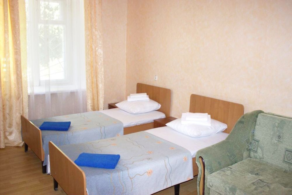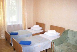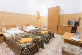 - 3-местный эконом. (6 номеров) Площадь 17-23 кв.м. В номере: три односпальные кровати, телевизор, холодильник, кондиционер, санузел с душем. Дополнительное место - раскладушка.