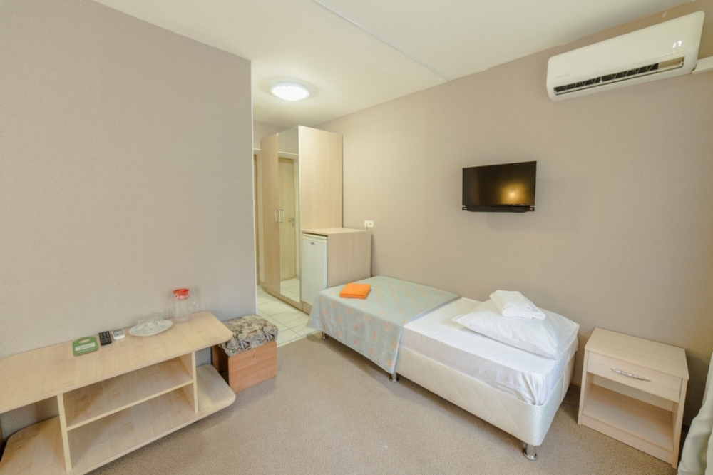 - 2-местный эконом малый. (3 номера) Площадь 11 кв.м. В номере: две односпальные кровати, телевизор, холодильник, кондиционер, санузел с душем. Дополнительное место не устанавливается.