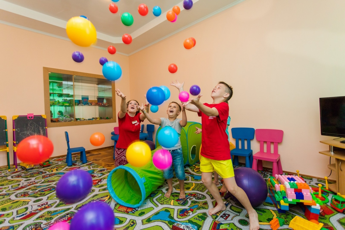 - детская площадка, большой надувной батут, детский клуб «Солнцеград», зона игровых приставок