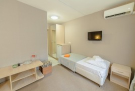 - 2-местный эконом. (3 номера) Площадь 14 кв.м. В номере: две односпальные кровати, телевизор, холодильник, кондиционер, санузел с душем. Дополнительное место - раскладушка.