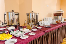 Питание: "все включено": питание по системе «шведский стол» на протяжении всего дня с 07:30 до 20:00: завтрак плавно переходящий в обед, обед плавно переходящий в ужин, с постепенной сменой ассортимента предлагаемых блюд, безалкогольные напитки: чай, кофе, компот, каркаде, лимонад, алкогольные напитки: игристый напиток, красное и белое вино, пиво (с 11:00).