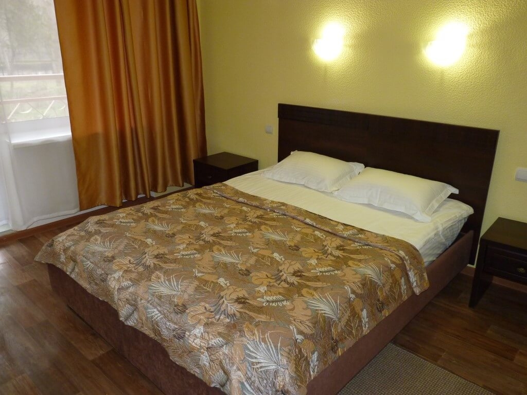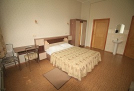 - 2-местный 1-комнатный Полулюкс. Площадь: 18 кв.м.. В номере: двуспальная кровать с ортопедическим матрасом, балкон, ванная комната с душевой кабиной, фен, холодильник, телевизор, балкон, двуспальная кровать, сплит-система, сейф.