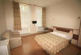 - 1-местный 1-комнатный 1 категория. Площадь: 17 кв.м. В номере: одна полутороспальная кровать с ортопедическим матрасом, холодильник, телефизор, мини-холодильник, санузел с душем в пол. Вид из номера на парк.