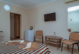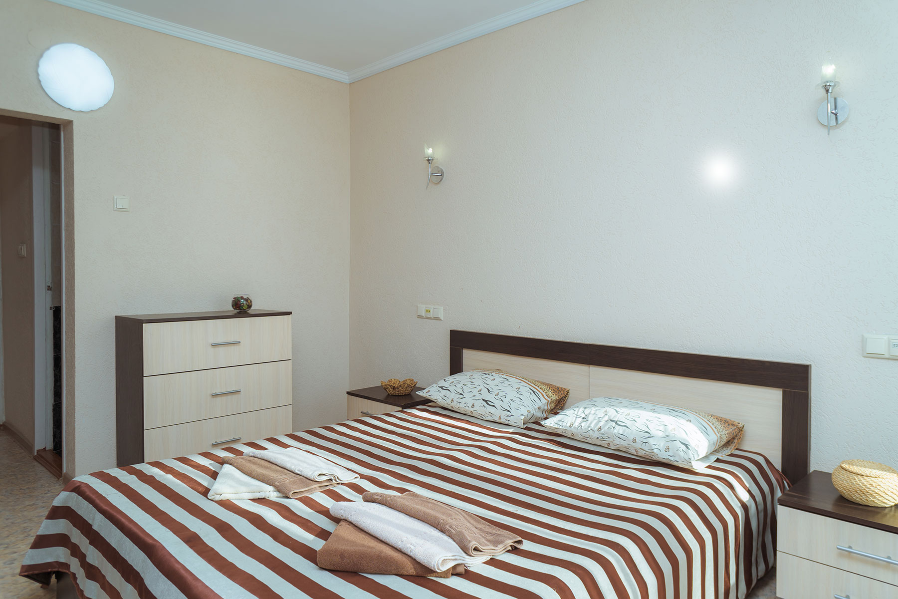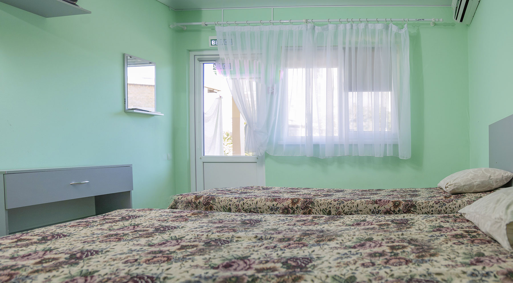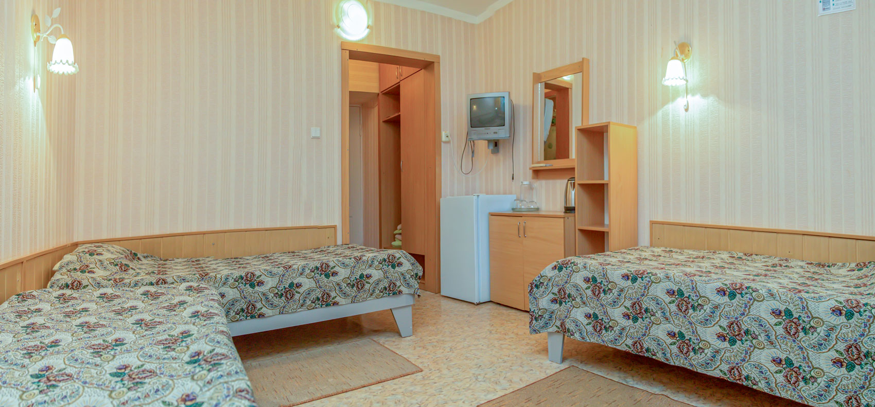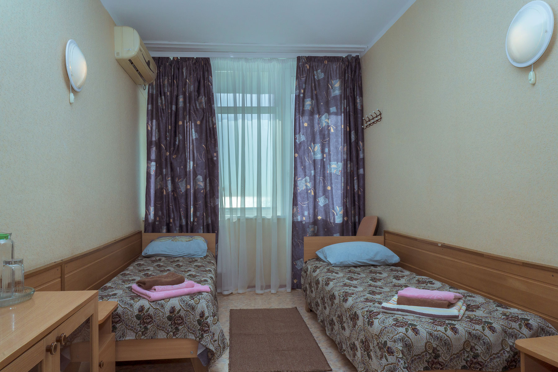 - 2-местный 1-комнатный улучшенный . Площадь: 18 кв.м.. В номере: 2-х спальная кровать или 2 раздельные кровати, телевизор, кондиционер, чайник, санузел с душем, фен, балкон с видом на море. Дополнительное место - раскладушка.