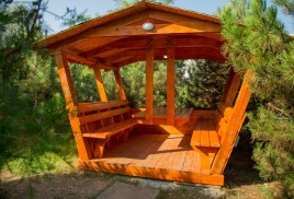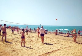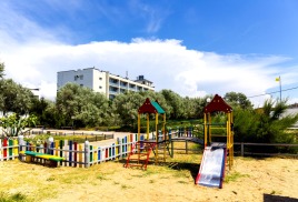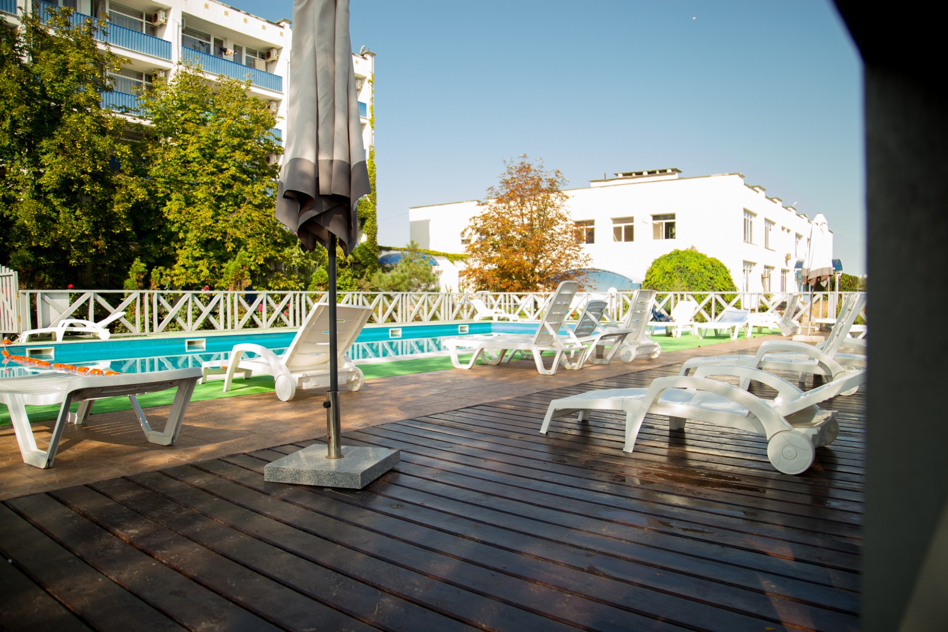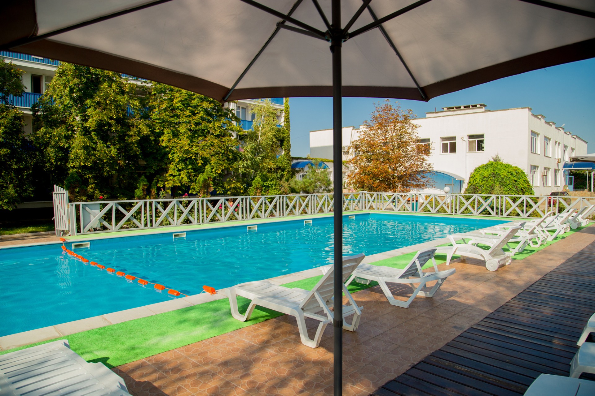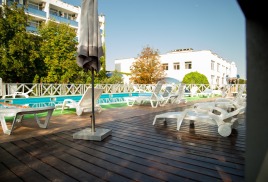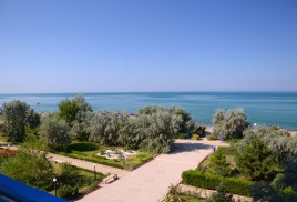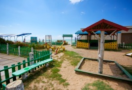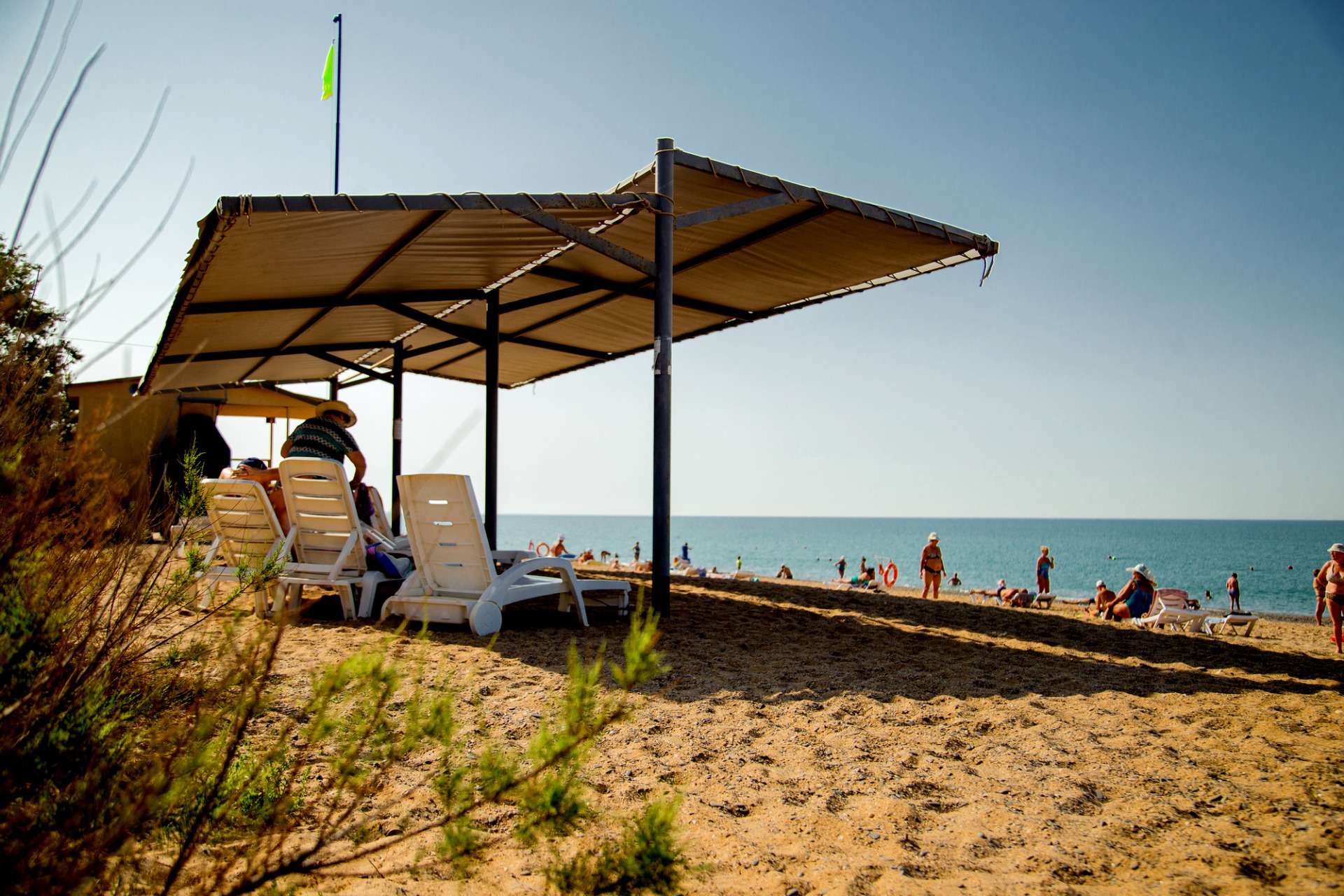 Пляж: песчано-галечный, оборудован лежаками (входят в стоимость) и деревянными навесами, в 30 м от корпуса.
