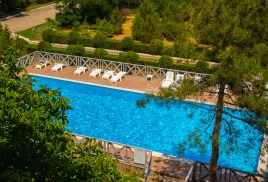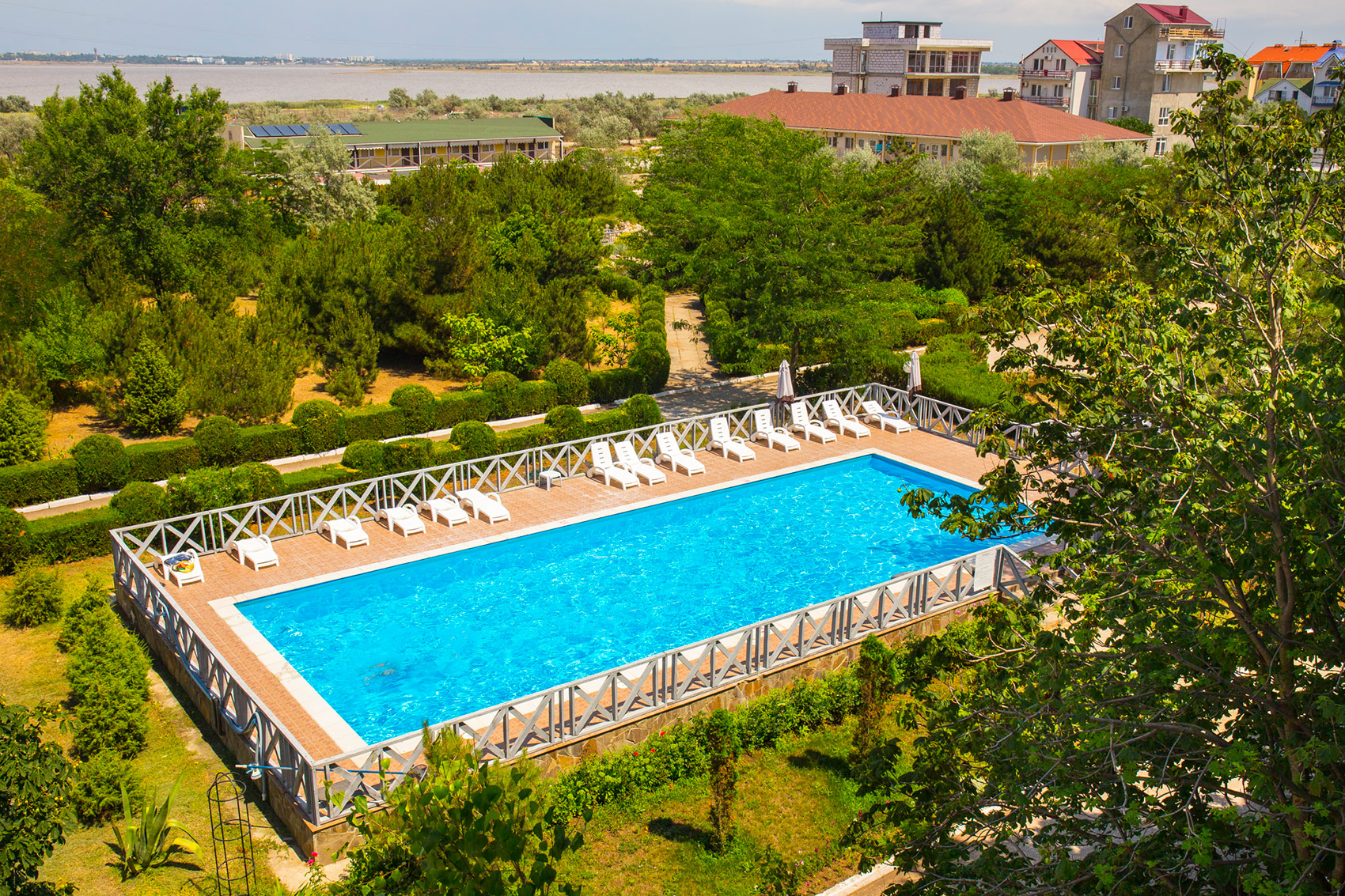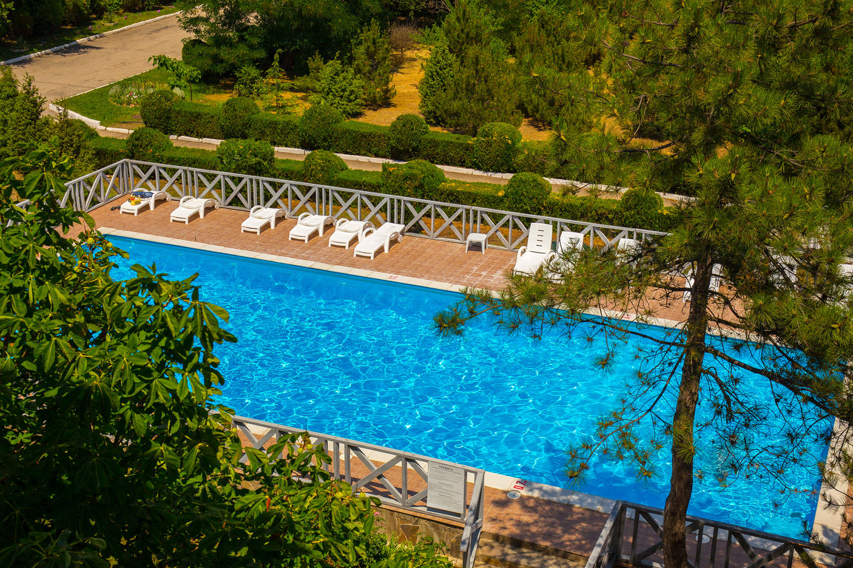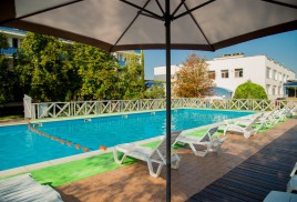 - открытый бассейн с пресной водой, подогреваемый: размеры: 7*18 м., глубиной 0,9-1,7 м., детское отделение