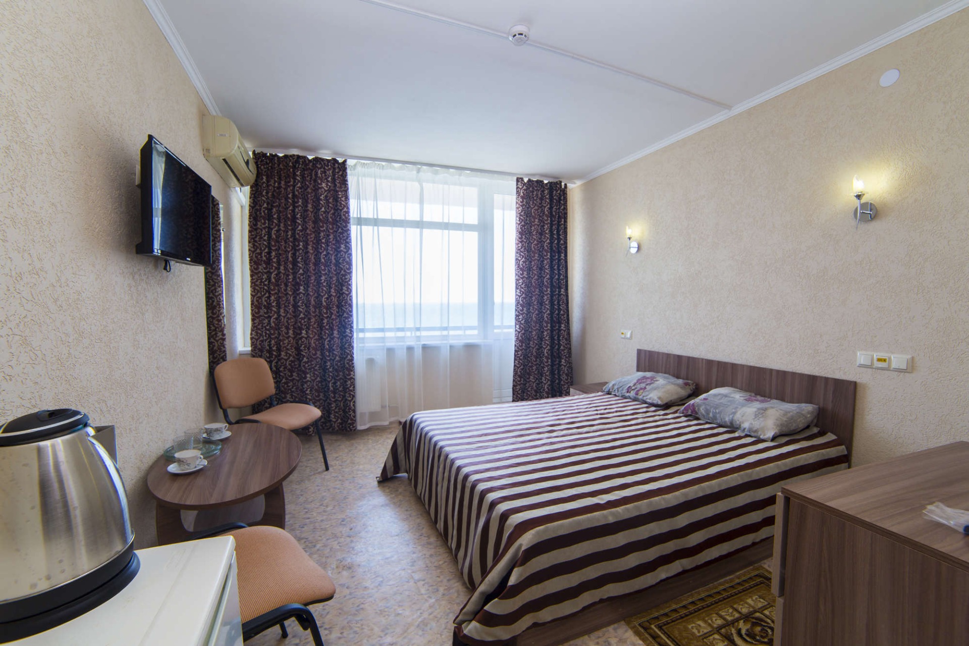 - 2-местный 1-комнатный повышенной комфортности. Площадь: 14кв.м. 5 этаж. В номере: две раздельные кровати, телевизор, холодильник,кондиционер, санузел с душевой кабиной, фен, балкон с видом на море. Дополнительное место – не устанавливается.