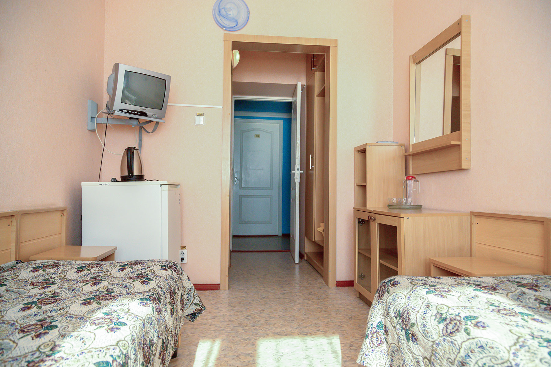 - 2-местный 1-комнатный стандарт. Площадь: 14-17 кв.м.. В номере :2 раздельные кровати, телевизор, холодильник, кондиционер, санузел с душем. Балкона нет. Дополнительное место- раскладушка.