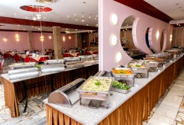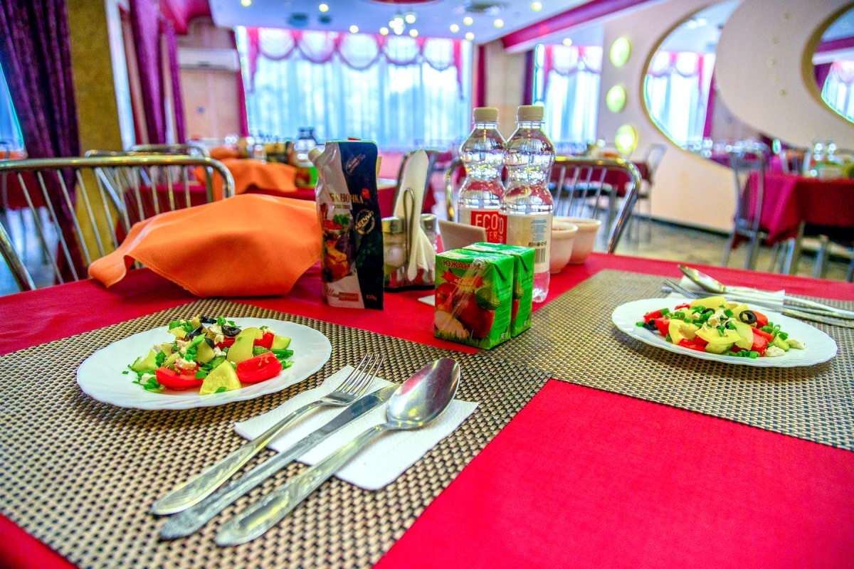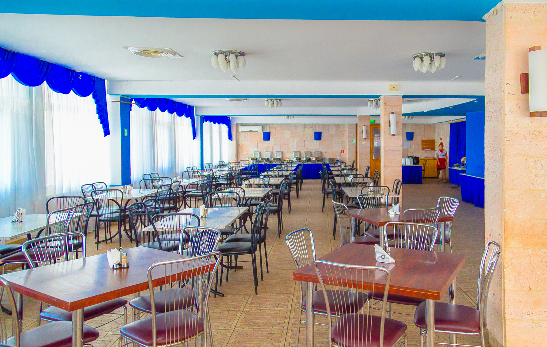 - для проживающих в стандартных номерах основного и летних корпусов предусмотрено питание в общем зале столовой.Для проживающих в улучшенных номерах предусмотрено питание в банкетном зале по усиленному меню.