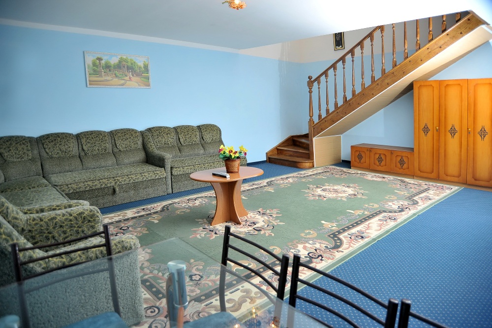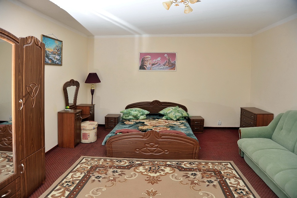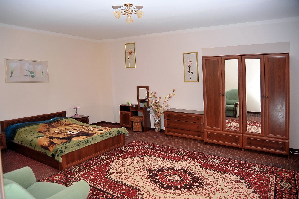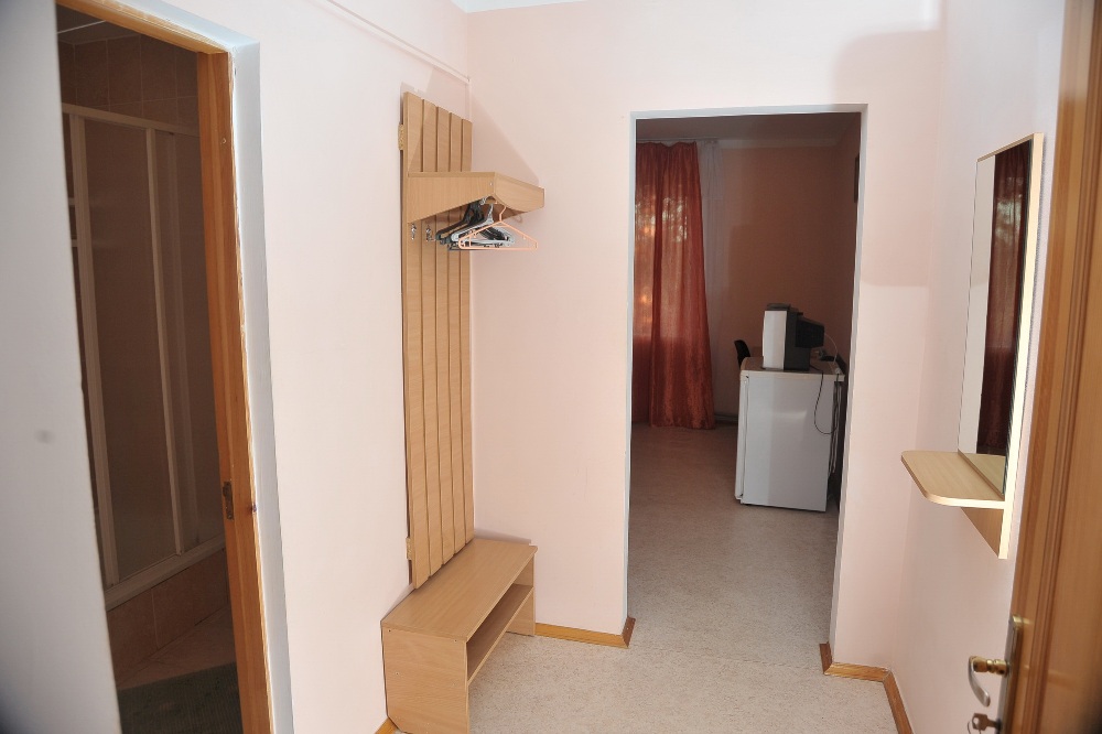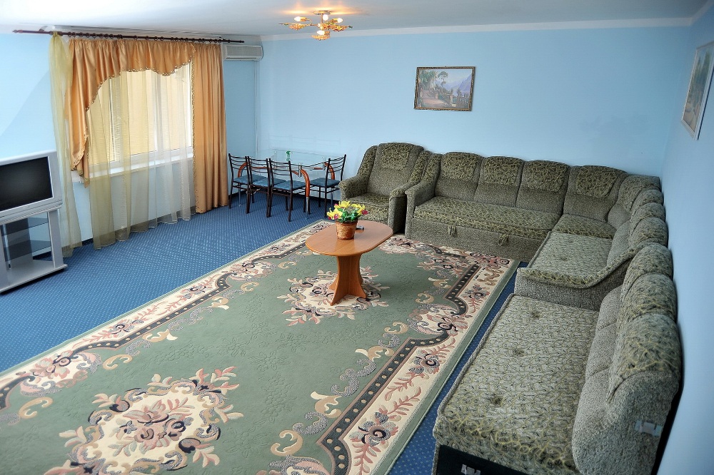 - 2-местный 2-комнатный номер Повышенной комфортности. Площадь: 41 кв.м. В номере: гостиная с диваном или кроватью, спальня с двумя односпальными кроватями или одной двухместной, телевизор, холодильник, кондиционер, санузел совмещенный, с душевой кабиной, балкон.