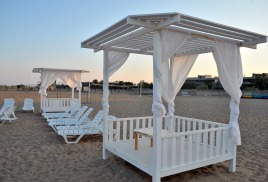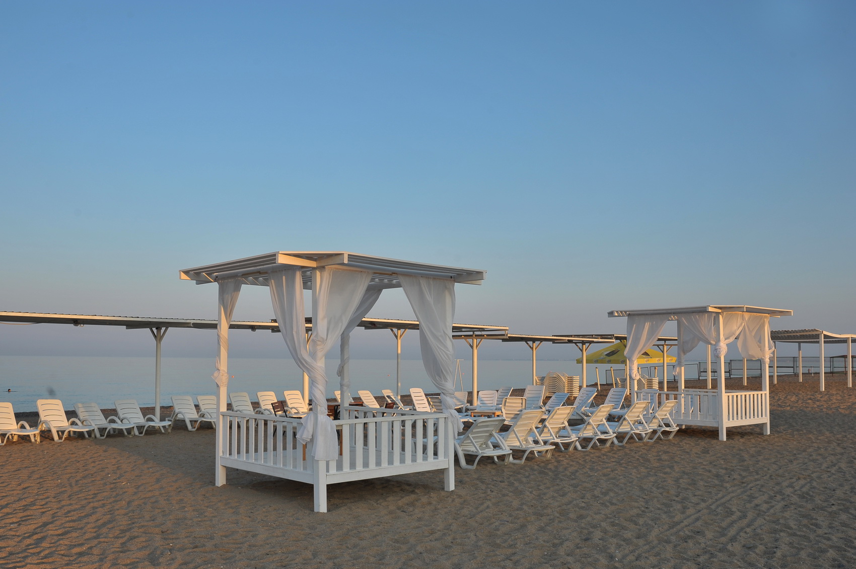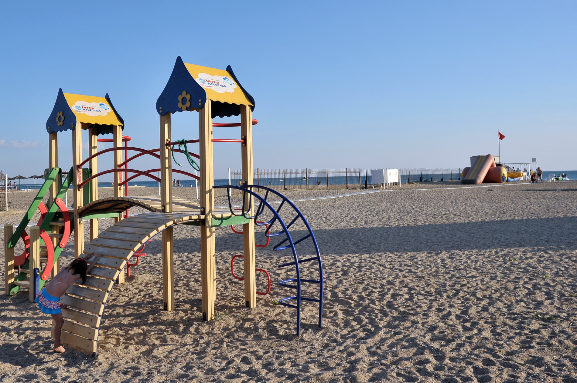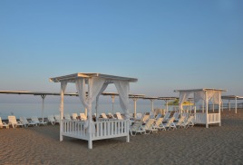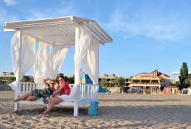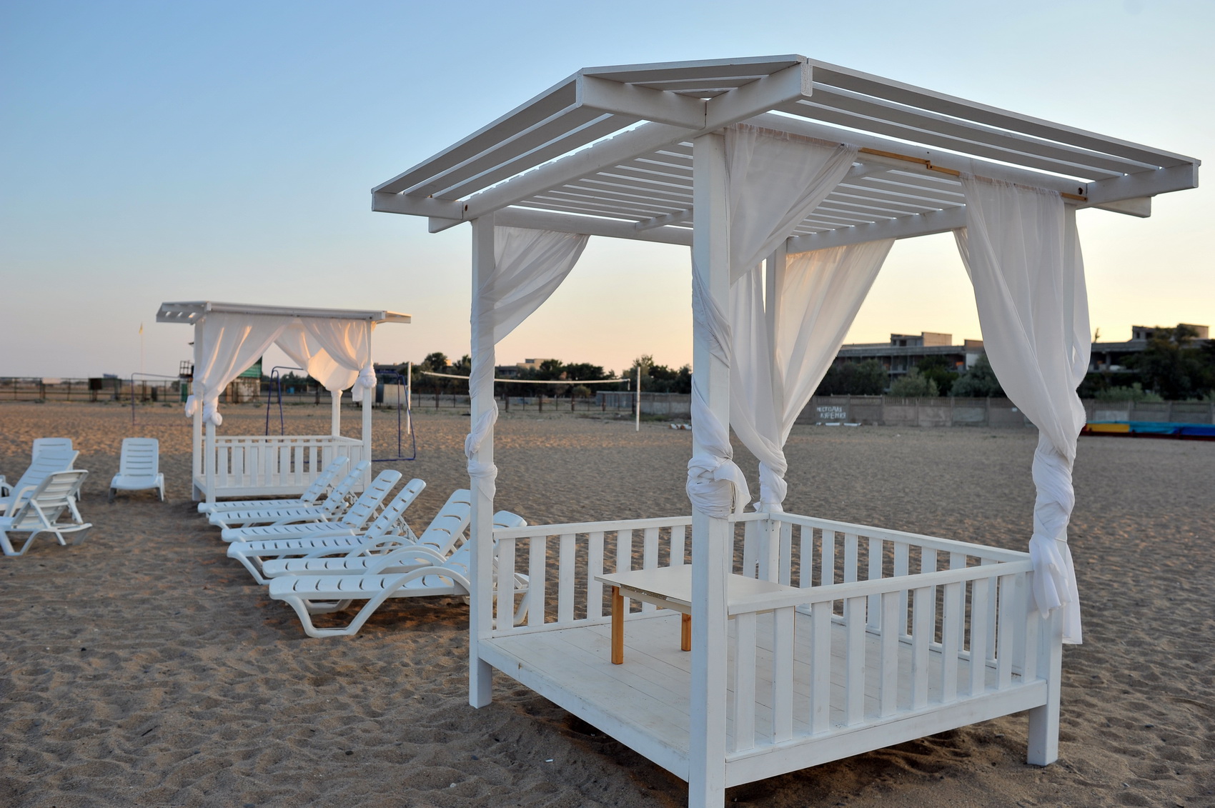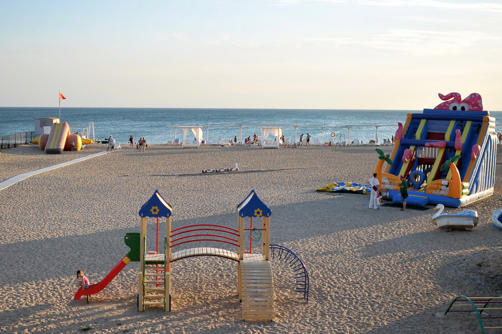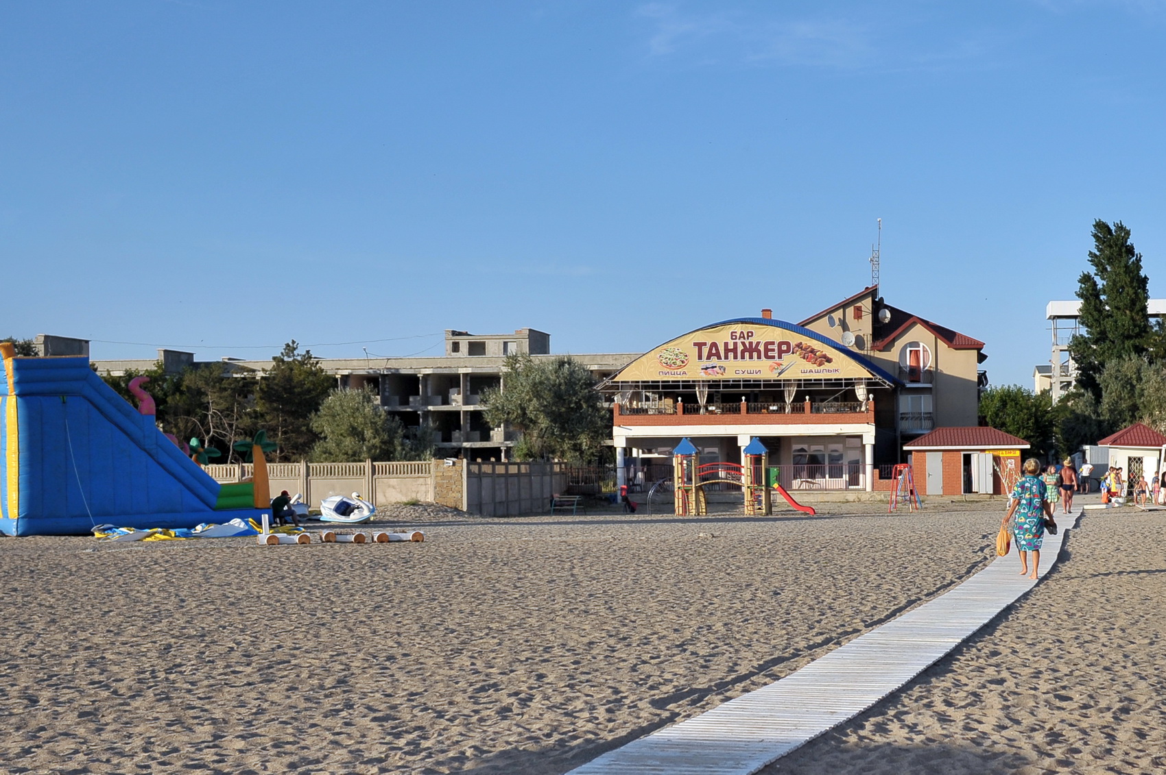 Пляж: песчаный собственных, 100 м от пансионата, навесы, лежаки за дополнительную плату.