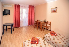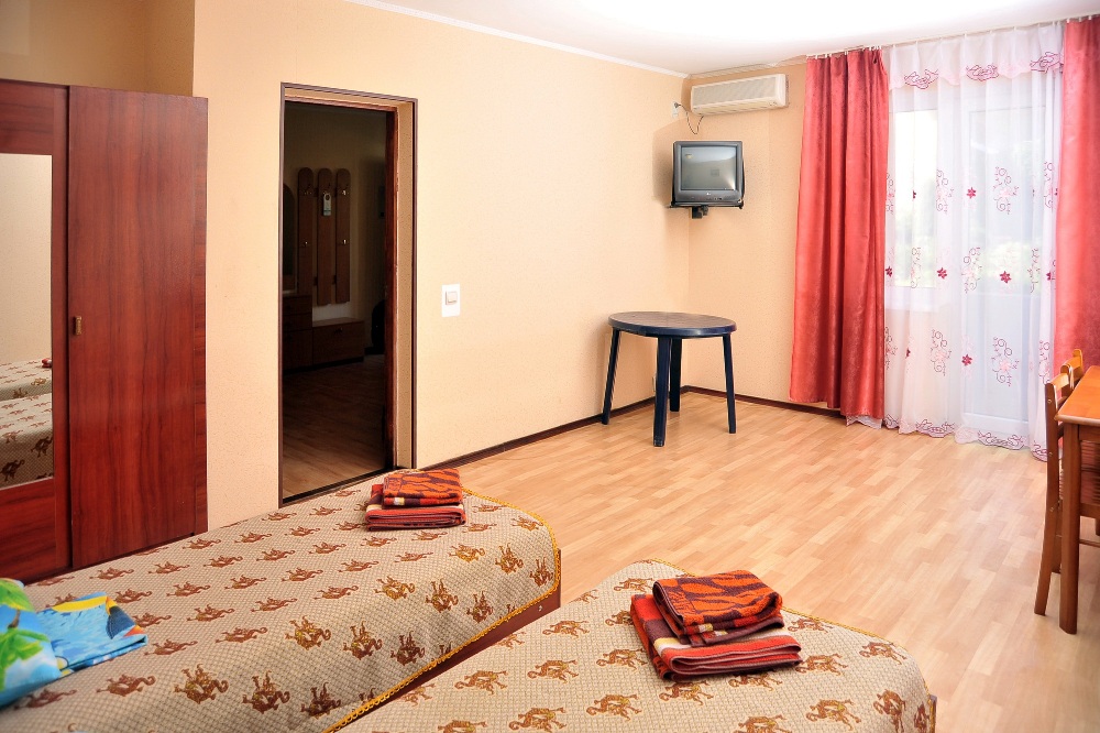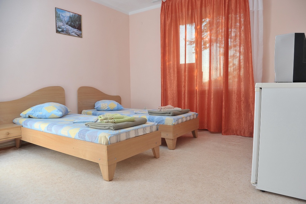 - 2-местный 1-комнатный номер стандарт с балконом / без балкона. Площадь номера 22 кв.м. В номере: кондиционер, телевизор, холодильник, 2 кровати, санузел совмещенный, с душевой кабиной. Дополнительное место еврораскладушка.В номерах с балконом вид на внутренний двор.