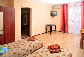 - 5-местный 2-комнатный Блок. Площадь: 46 кв.м. В номере: гостиная ( стол, диван или кровать, холодильник , стулья), комната с двуспальной кроватью, комната с тремя односпальными кроватями , кондиционер, телевизор, , санузел совмещенный, с душевой кабиной, балкон.