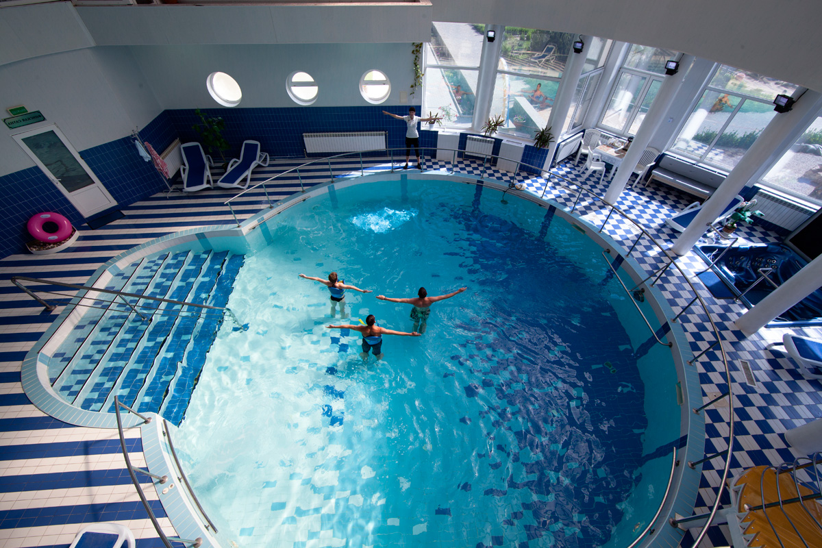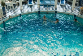 - подогреваемый крытый бассейн с пресной водой (28 градусов) работает в зимнее время
